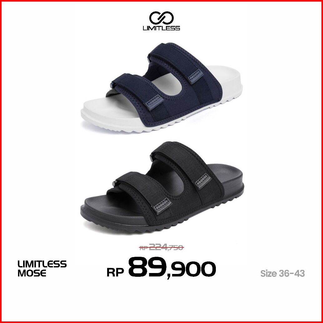Limitless - Sandal Selop Wanita Mose Kekinian Terbaru 2025 Sendal Slip On Cewek Slop Fashionable - Size 36-43