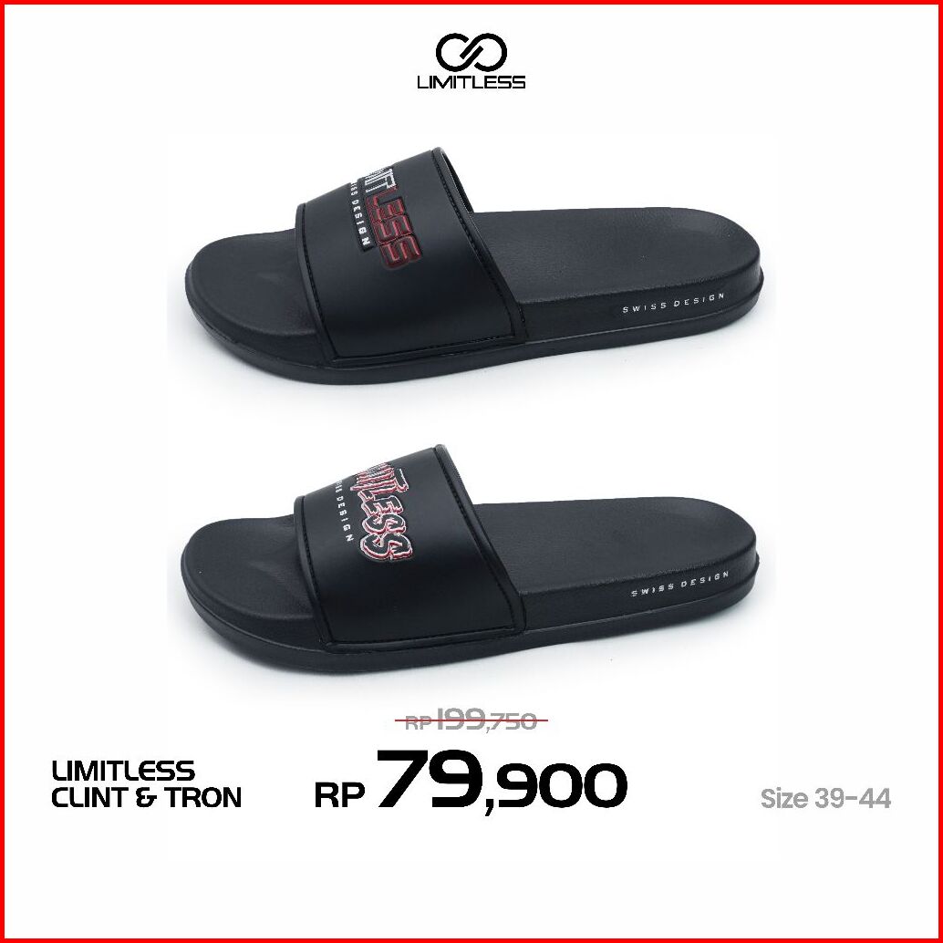 Limitless - Sandal Slide Pria Clint Terbaru Sendal Pria Casual Black - Size 39 - 44