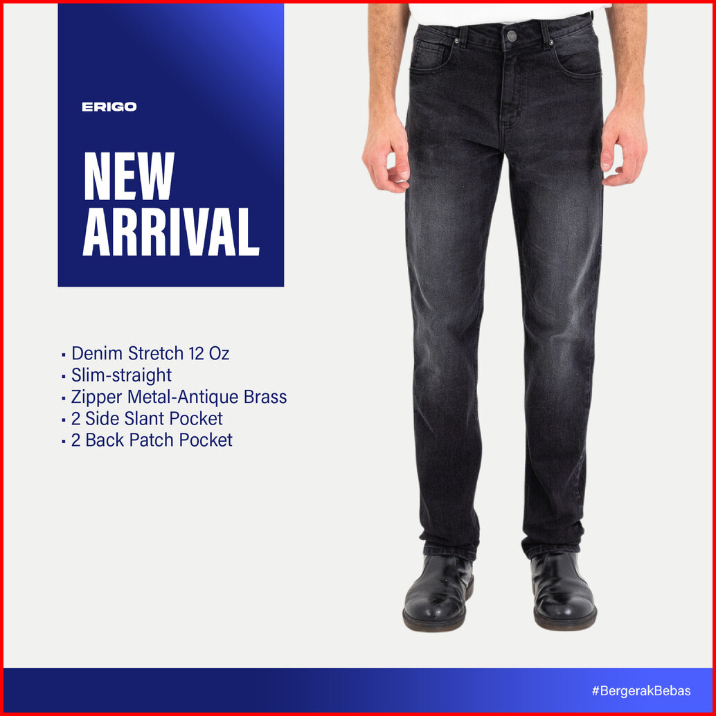 Erigo Denim Pants Eaton Black Whisker - Celana Panjang Denim Unisex