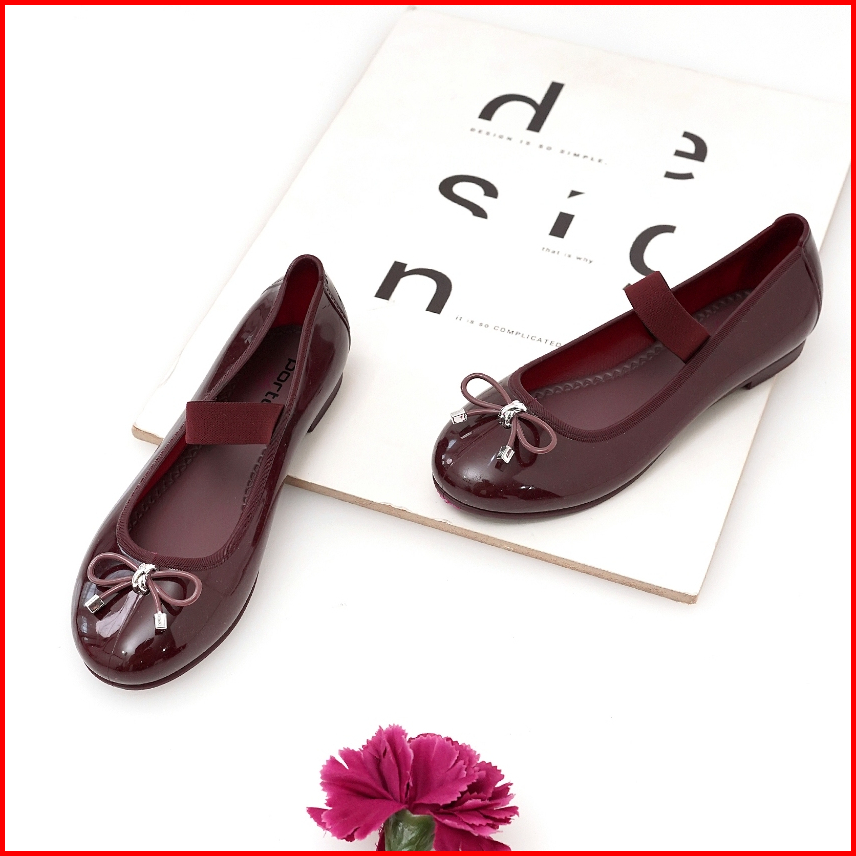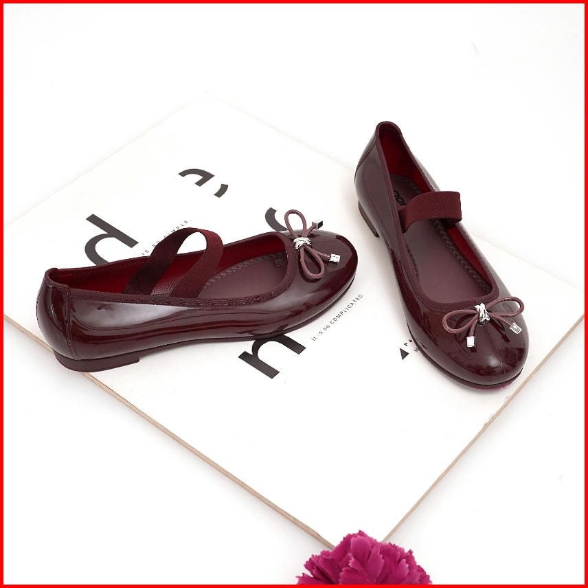Porto Lsa-2 Flatshoes Wanita Aksesoris Pita Kekinian Sepatu Marry Jane Jelly Anti Slip Cherry Red