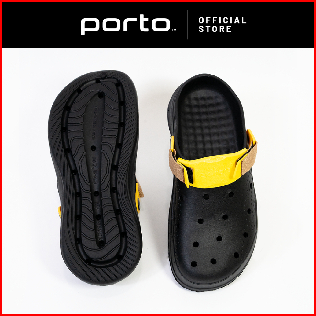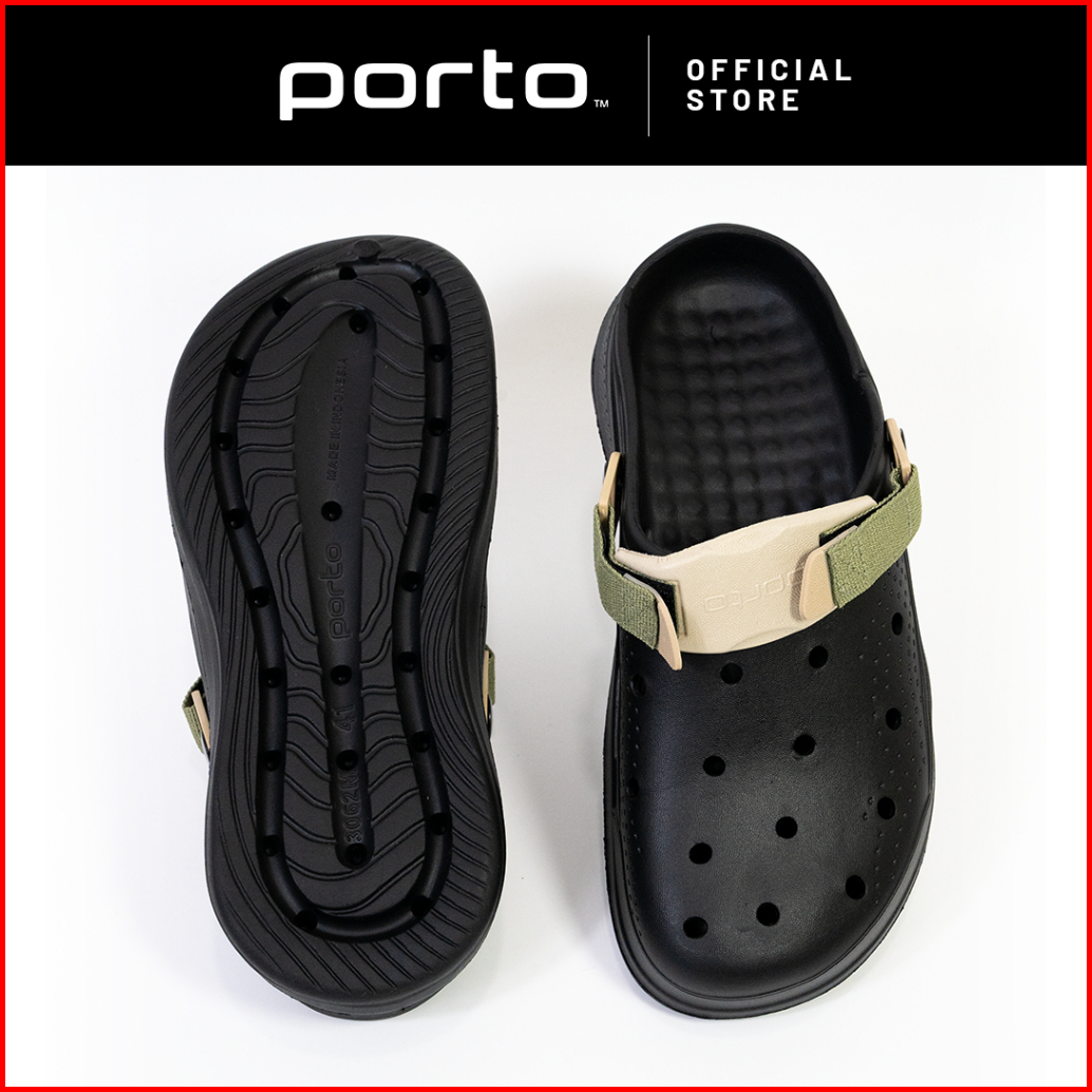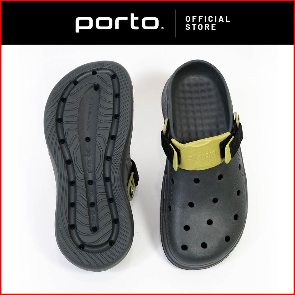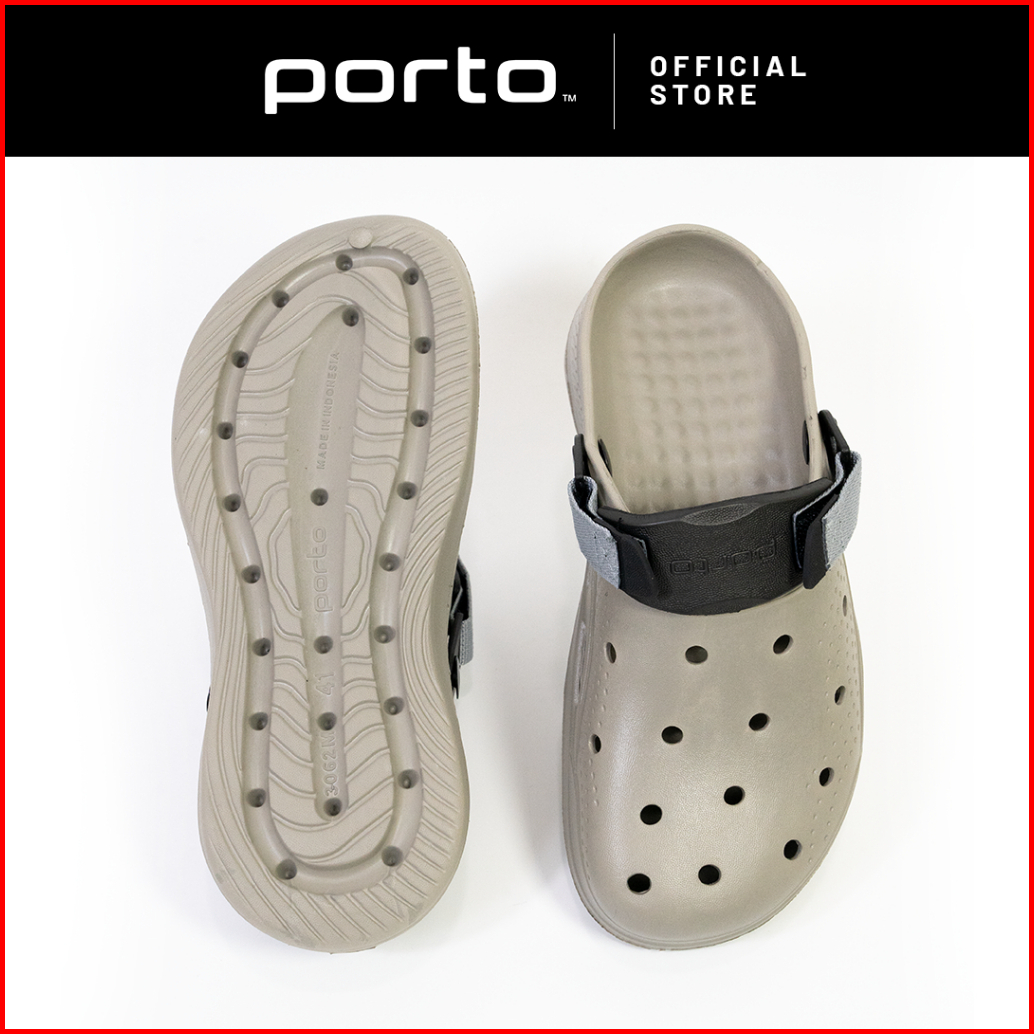 Porto 3062m - Sandal Pria Model Baim Clog Sandal Pria Kekinian Black Driftwoodgrey Asphaltgrey
