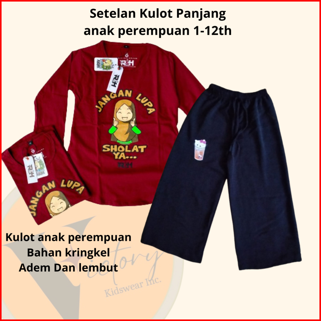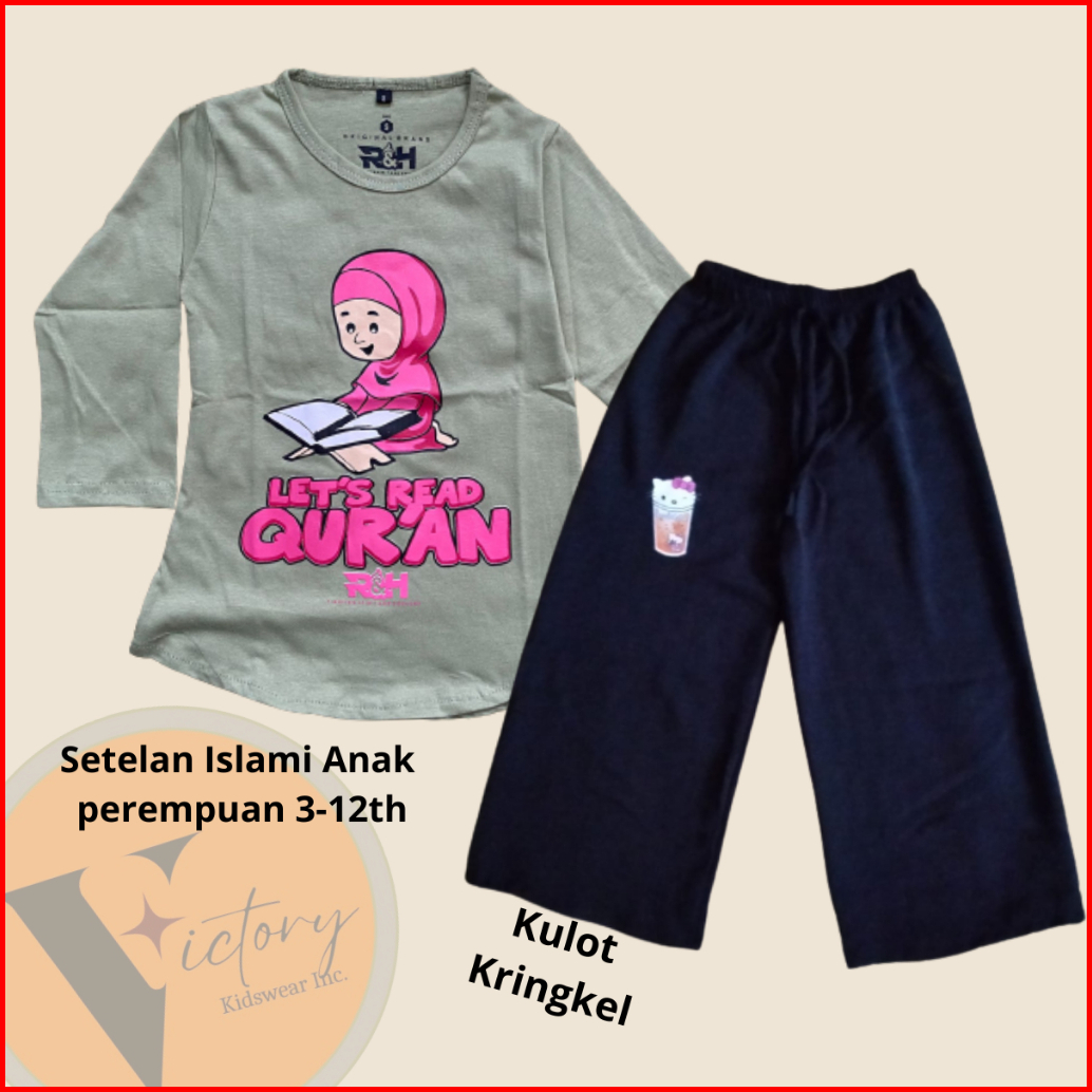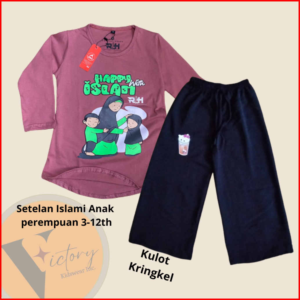 Setelan Baju Islami Anak Perempuan Umur 3-12 Th Bahan Katun Celana Kulot Kringkel Dan Tunik Anak Cewek
