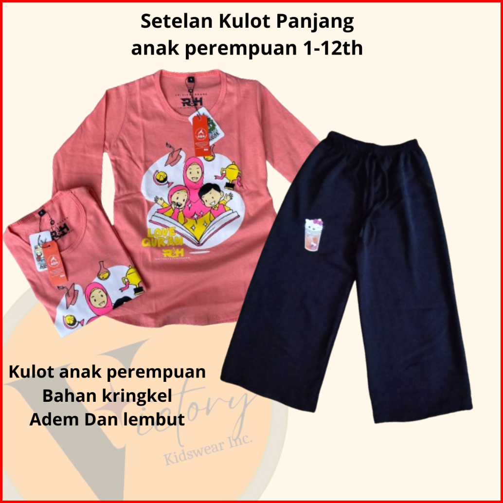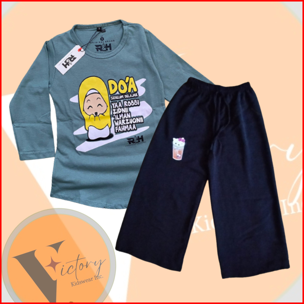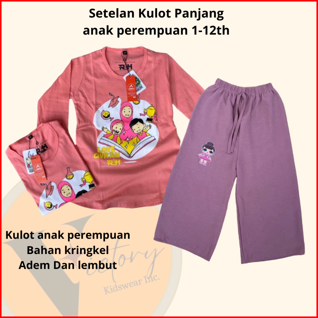 Setelan Baju Islami Anak Perempuan Umur 3-12 Th Bahan Katun Celana Kulot Kringkel Dan Tunik Anak Cewek