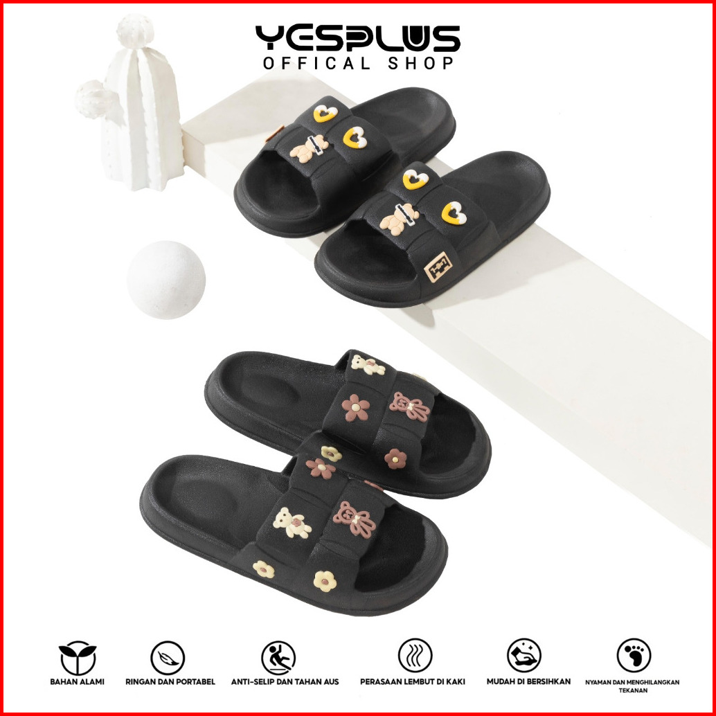 Yesplus Sandal Original 2255-5 Sandal Selop Jelly Wanita Motif Love Bear Tebal 3 Cm Import Pvc 36-41