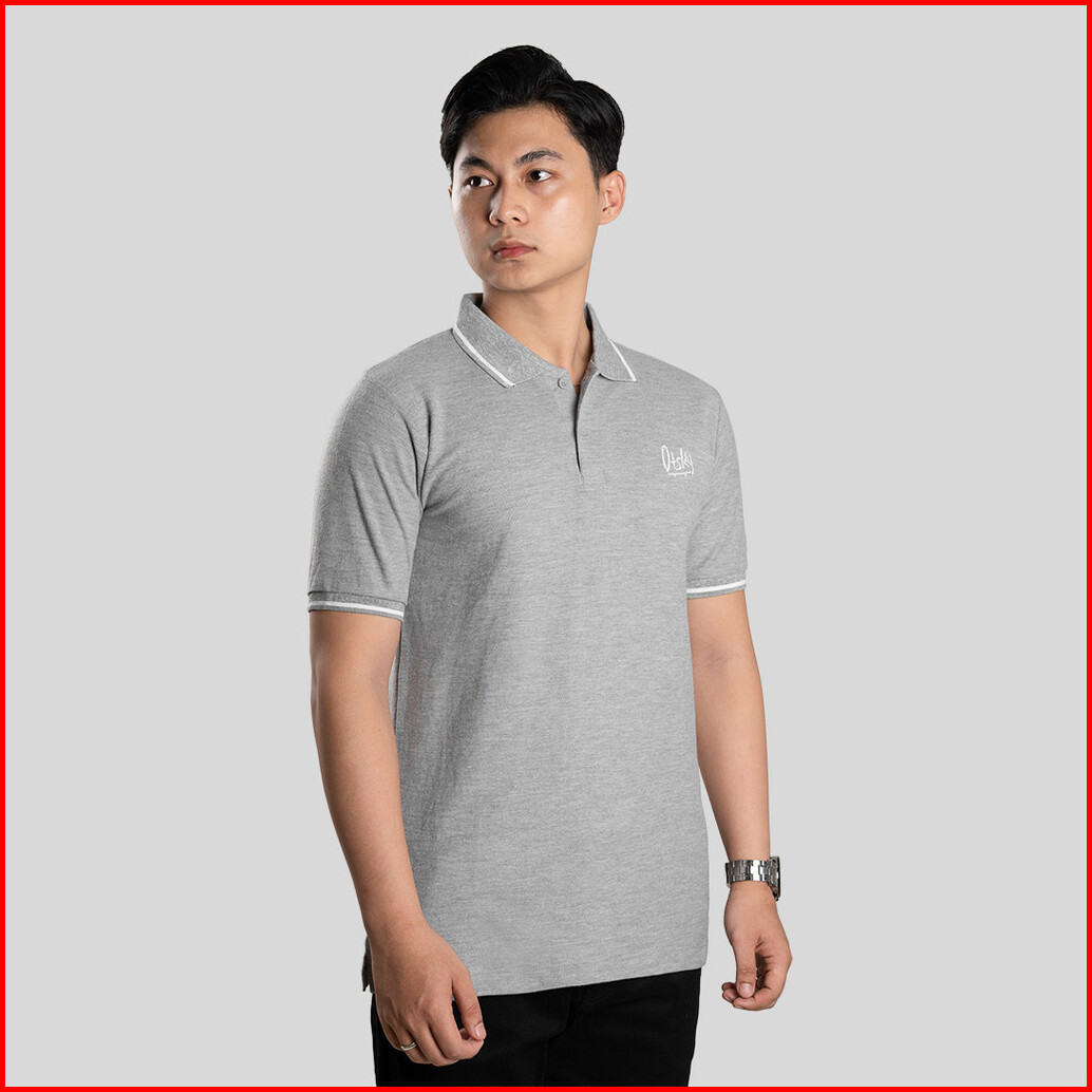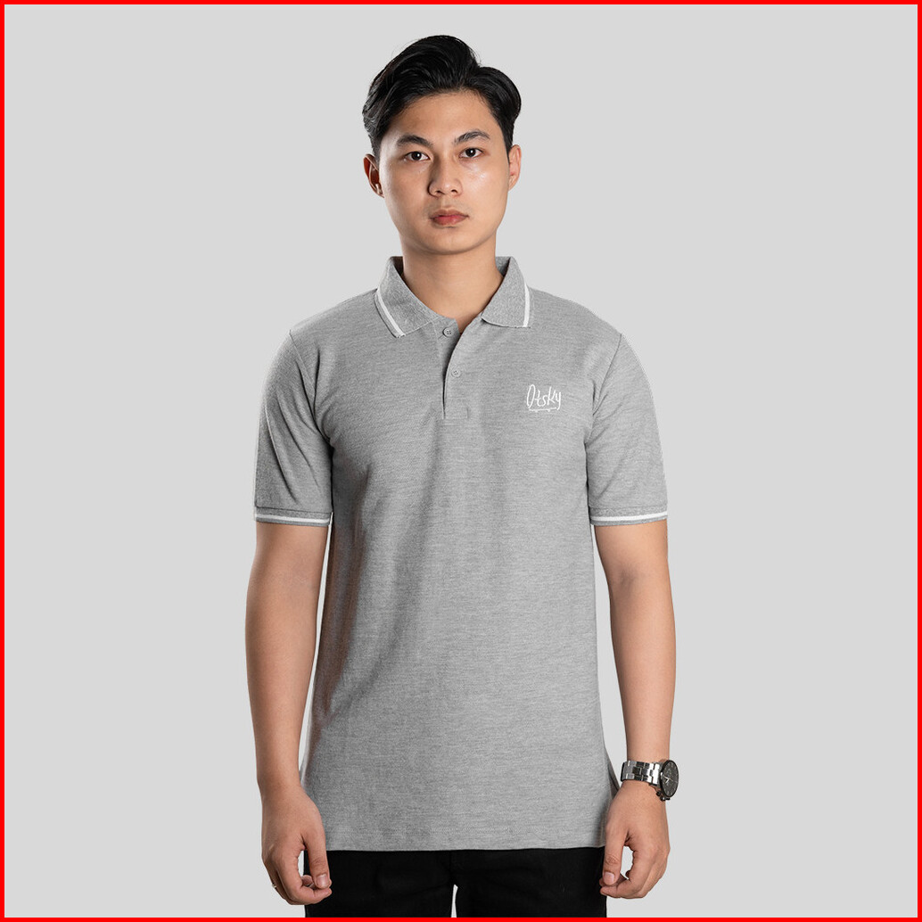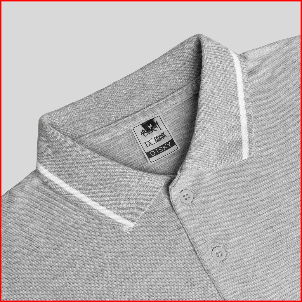 Otsky Polo Shirt Pria Grey List White Kerah Series