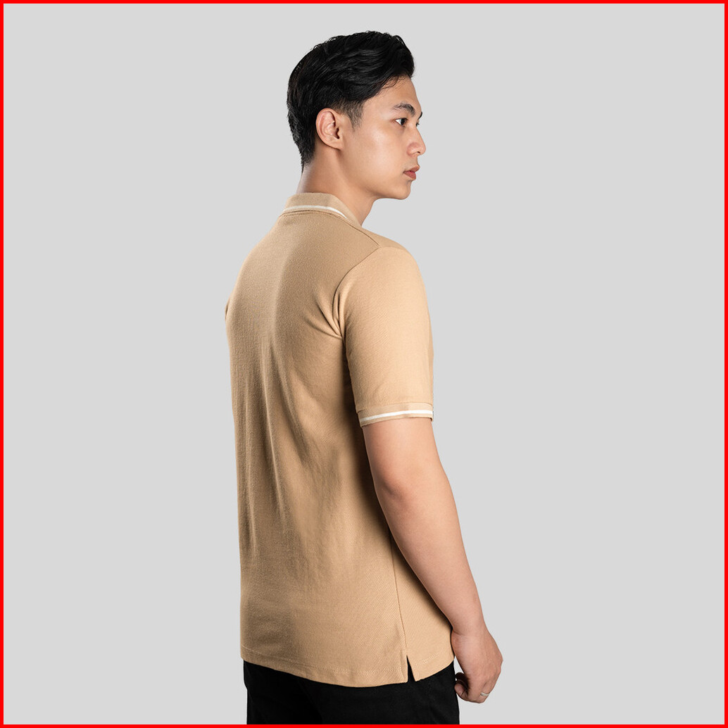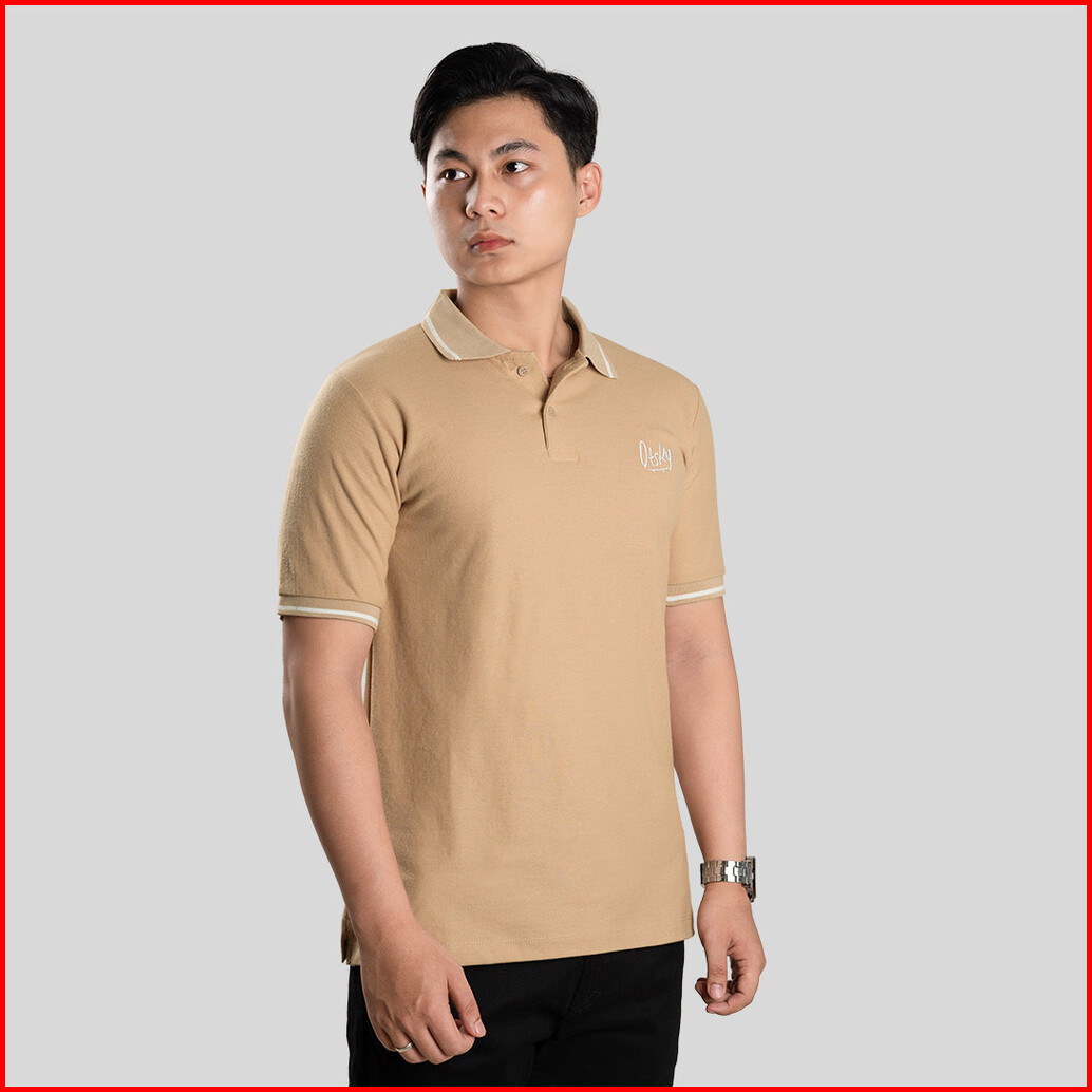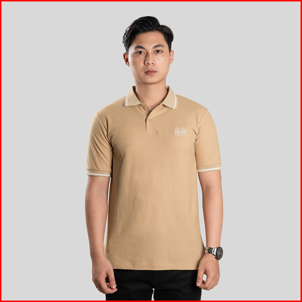 Otsky Polo Shirt Pria Cream List White Kerah Series