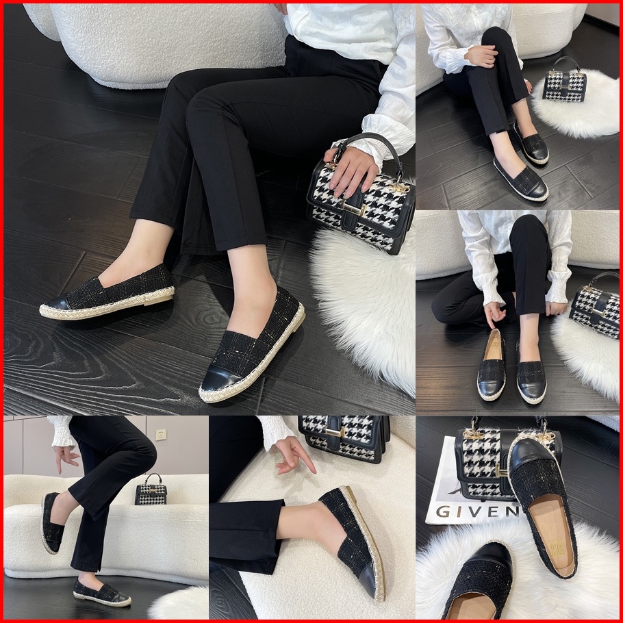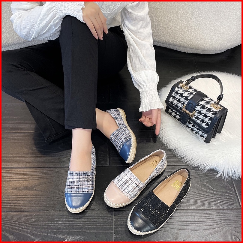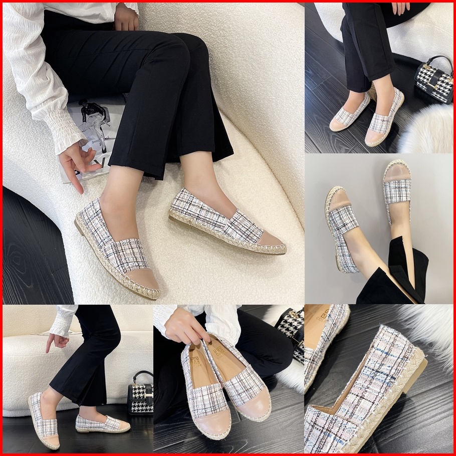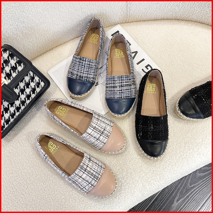 Coline Cln-3168 Tweed Flatshoes Loafers Wanita Kerja C1158