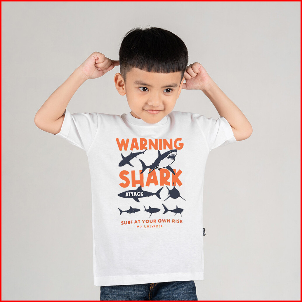 Otsky X My Universe Kaos Anak Logo Shark White Cotton 30s X Shr002wh
