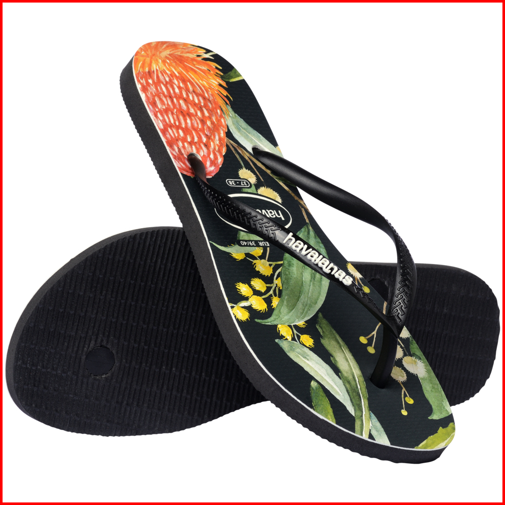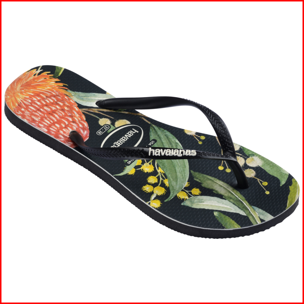 Havaianas 4058 Slim Fauna - Black Black White - Sandal Wanita