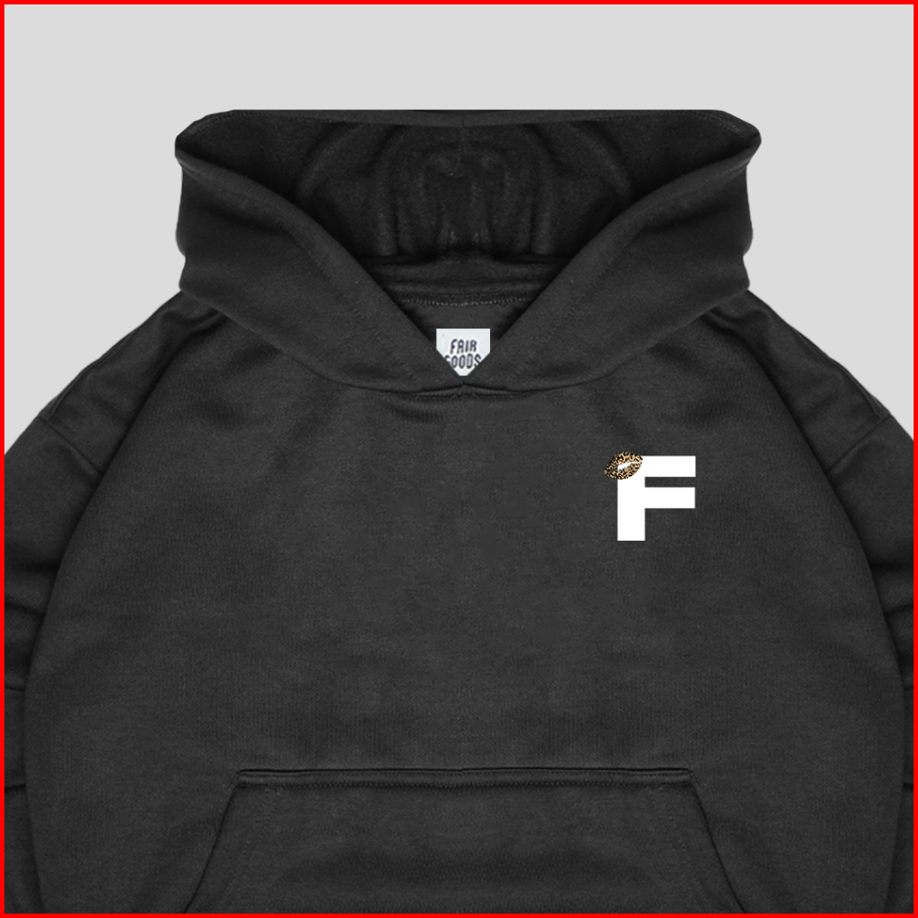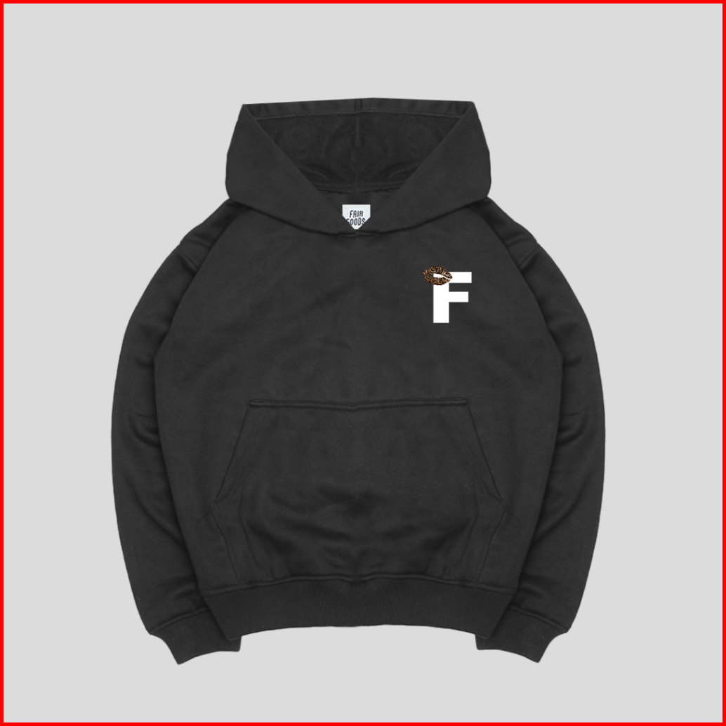 Fairgoods Hoodie Boxy Fit 320 Gsm - F Logo Kiss - Black