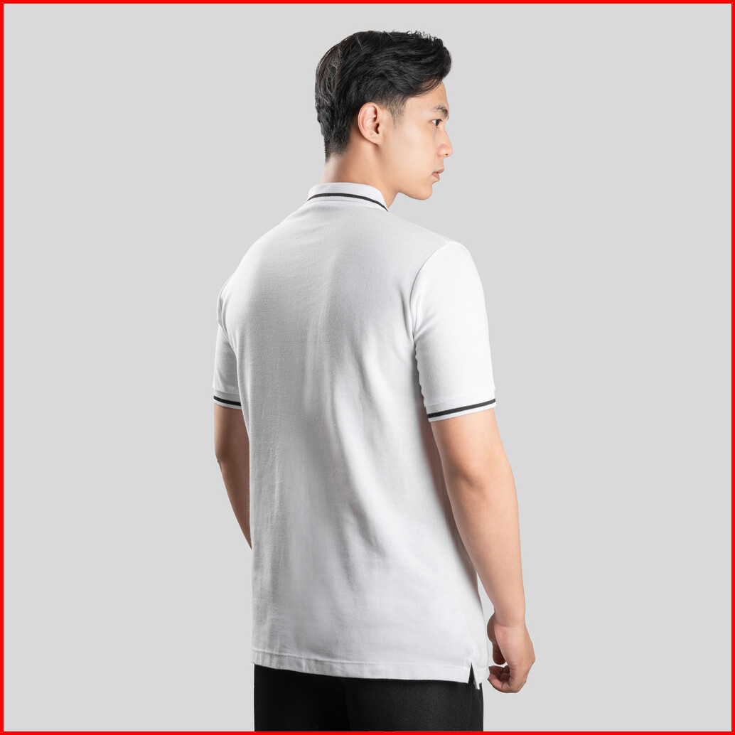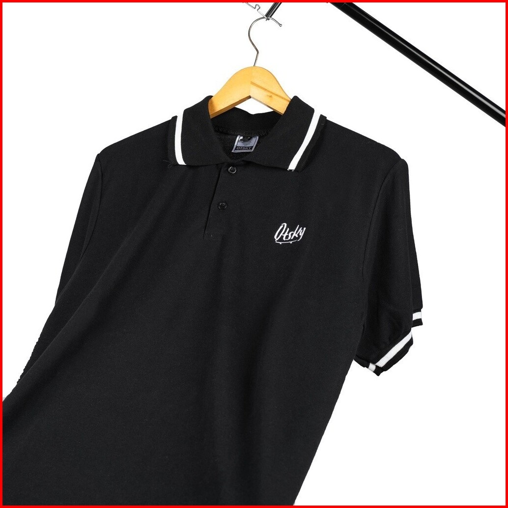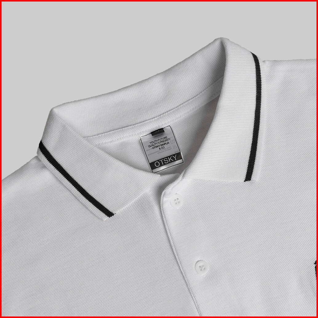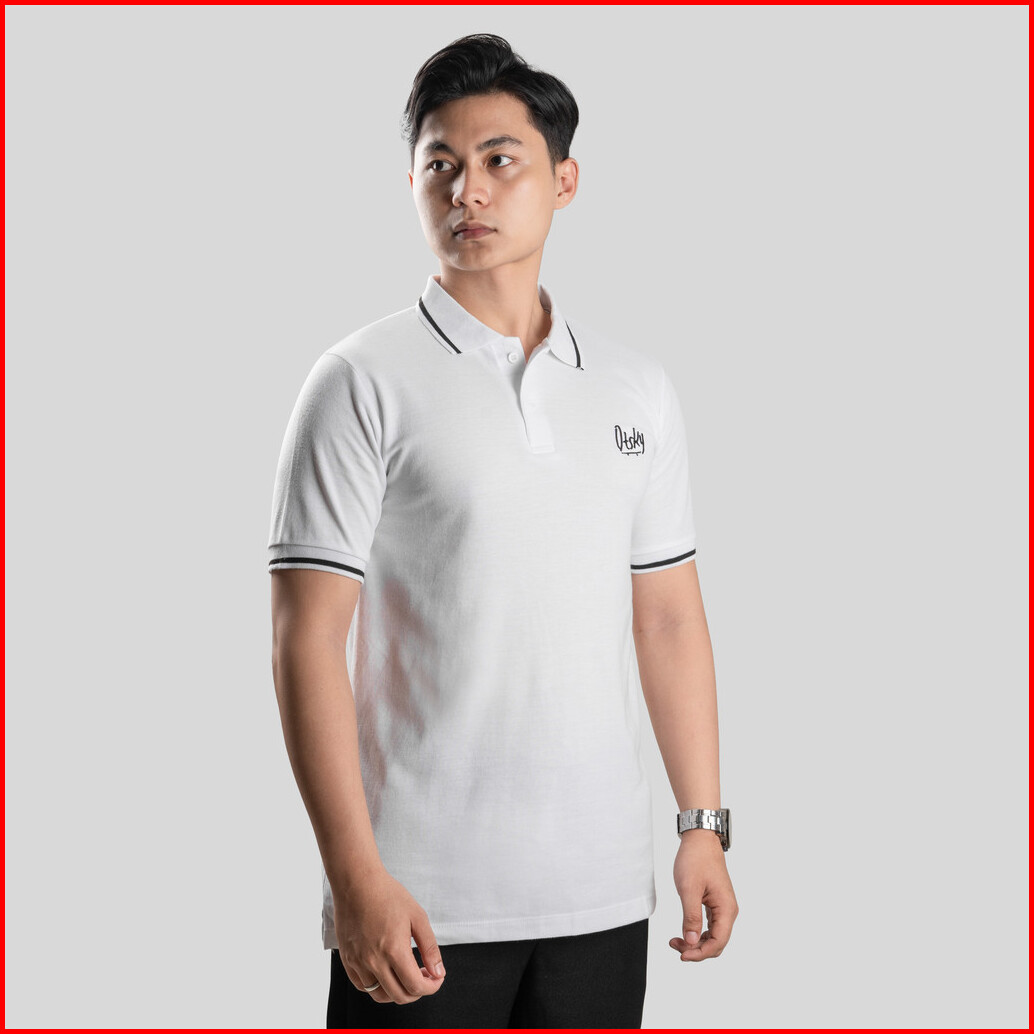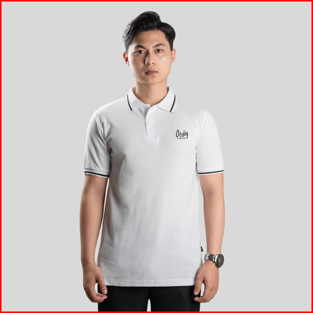 Otsky Polo Shirt Pria White List Black Kerah Series
