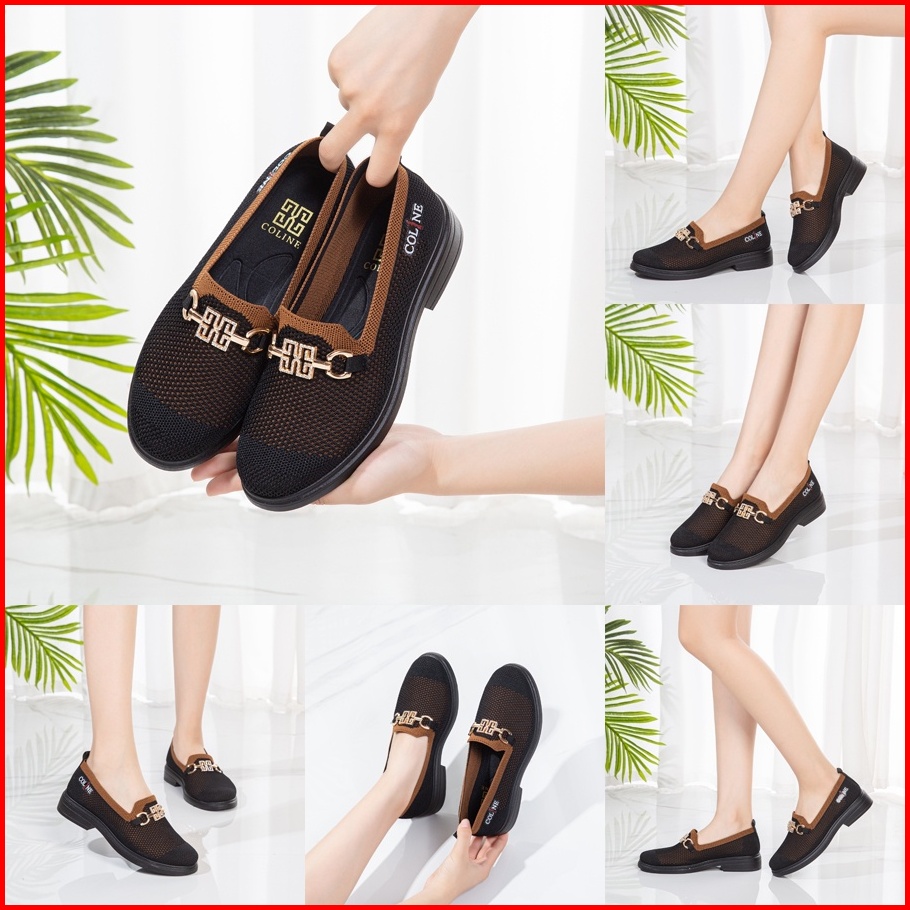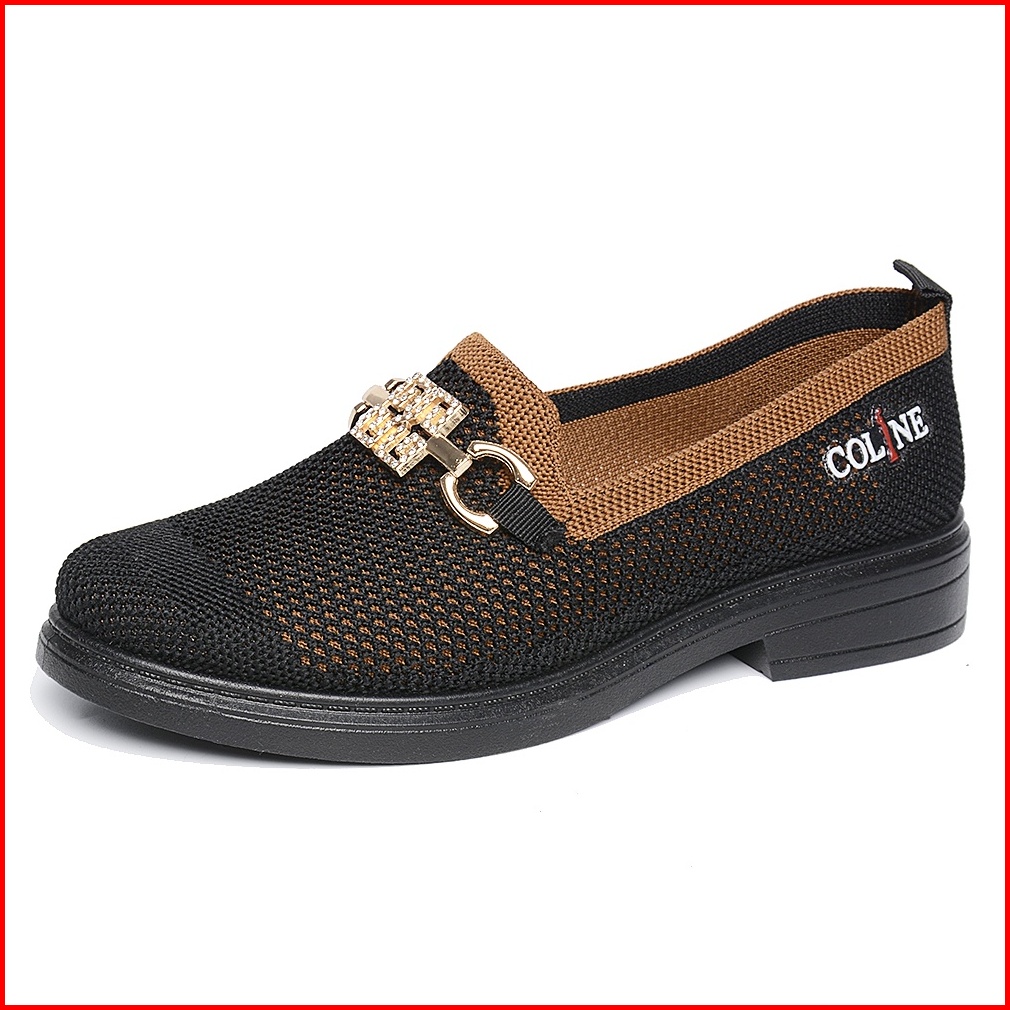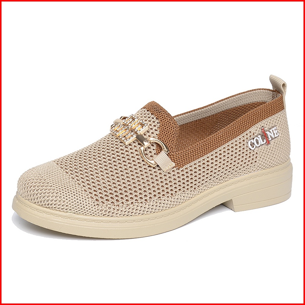 Coline Cl-1782 Flyknit Loafers Shoes Metallic Sepatu Rajut Wanita C1129