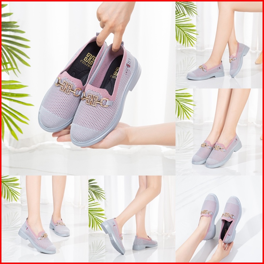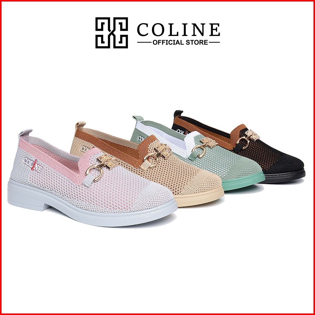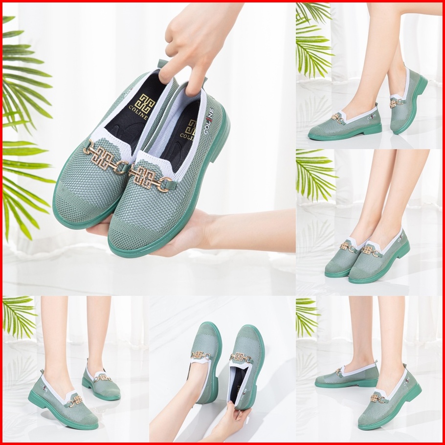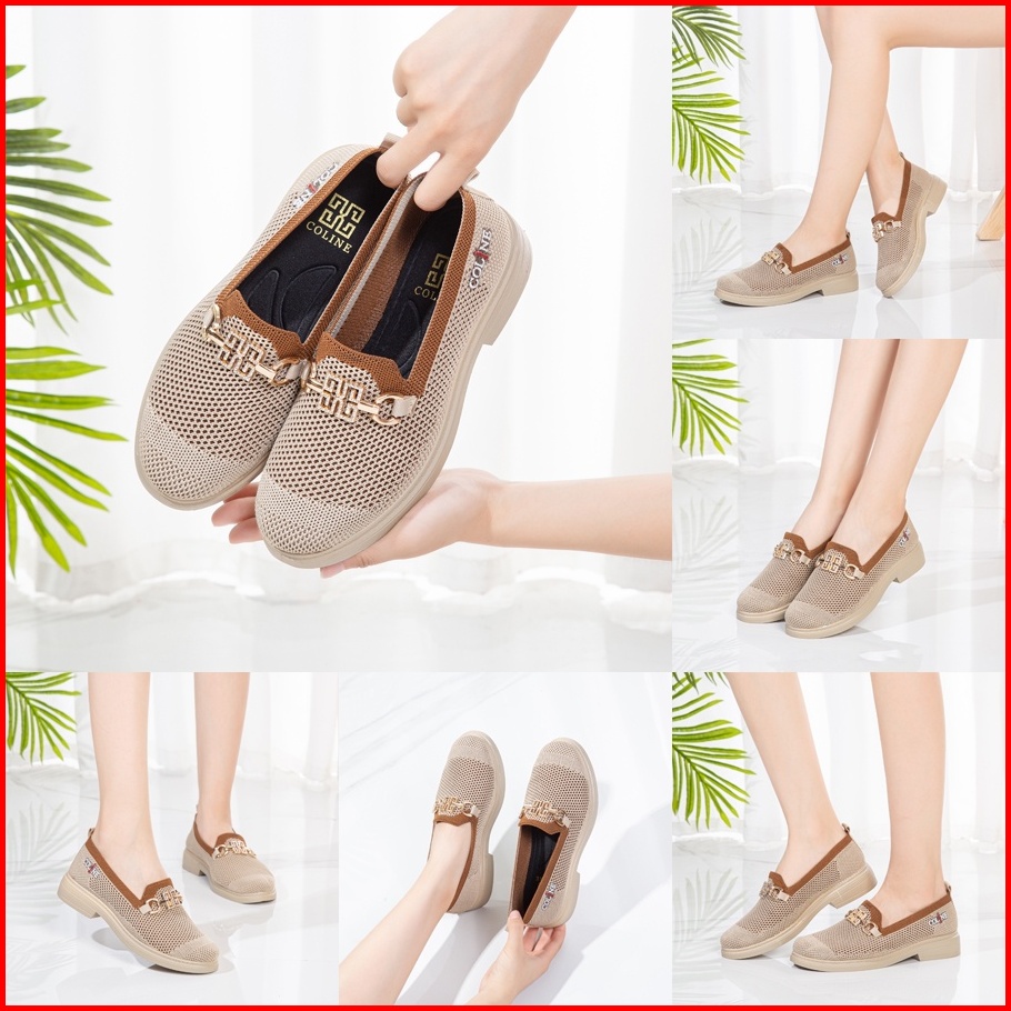 Coline Cl-1782 Flyknit Loafers Shoes Metallic Sepatu Rajut Wanita C1129