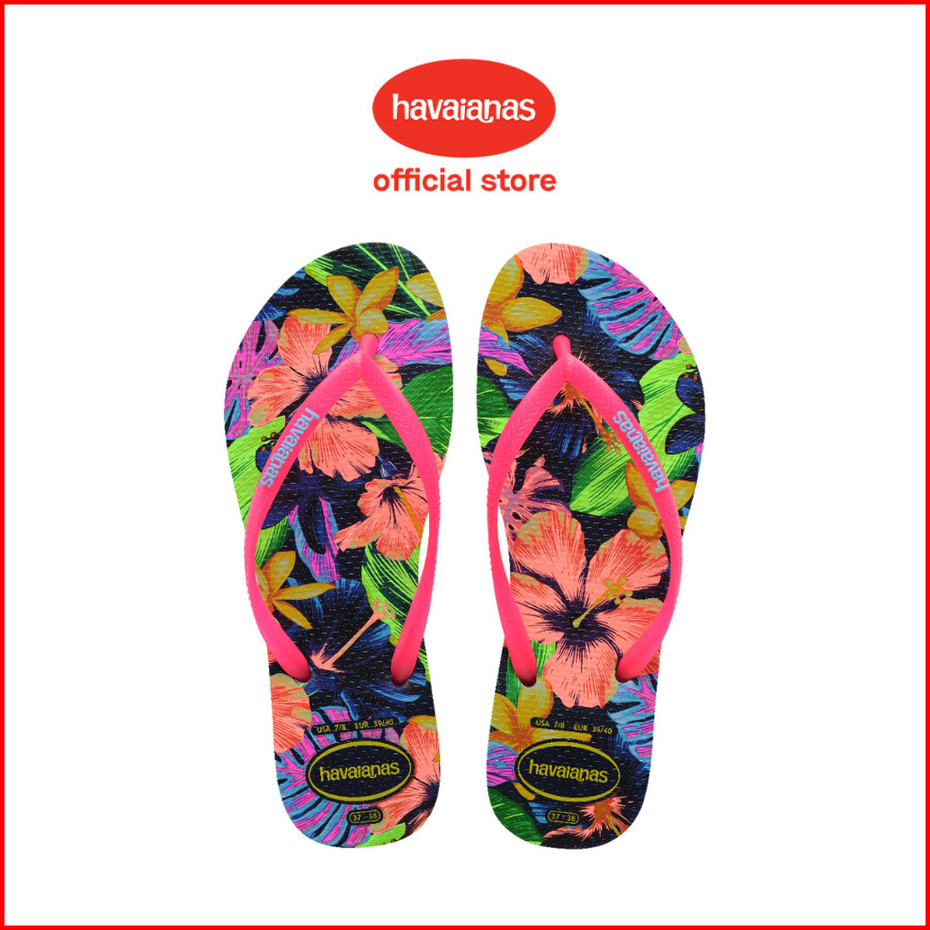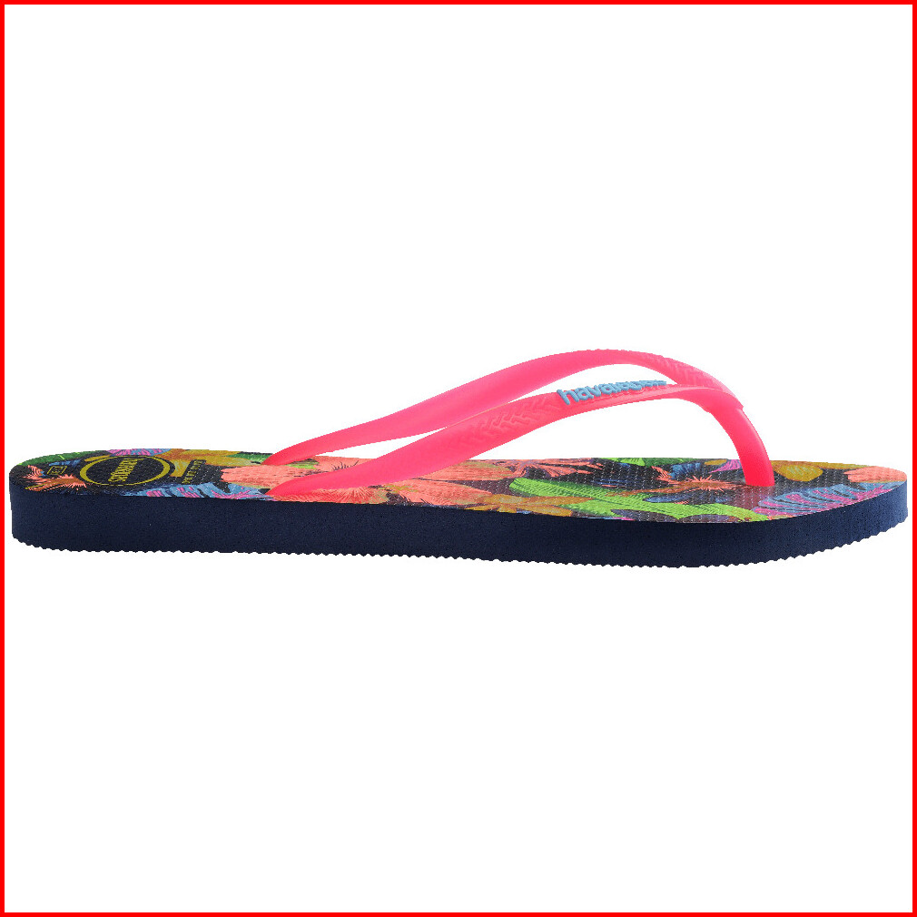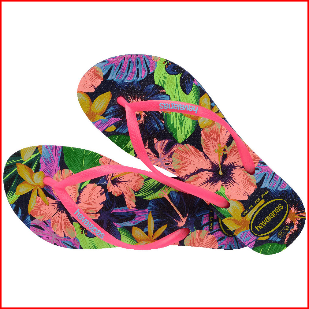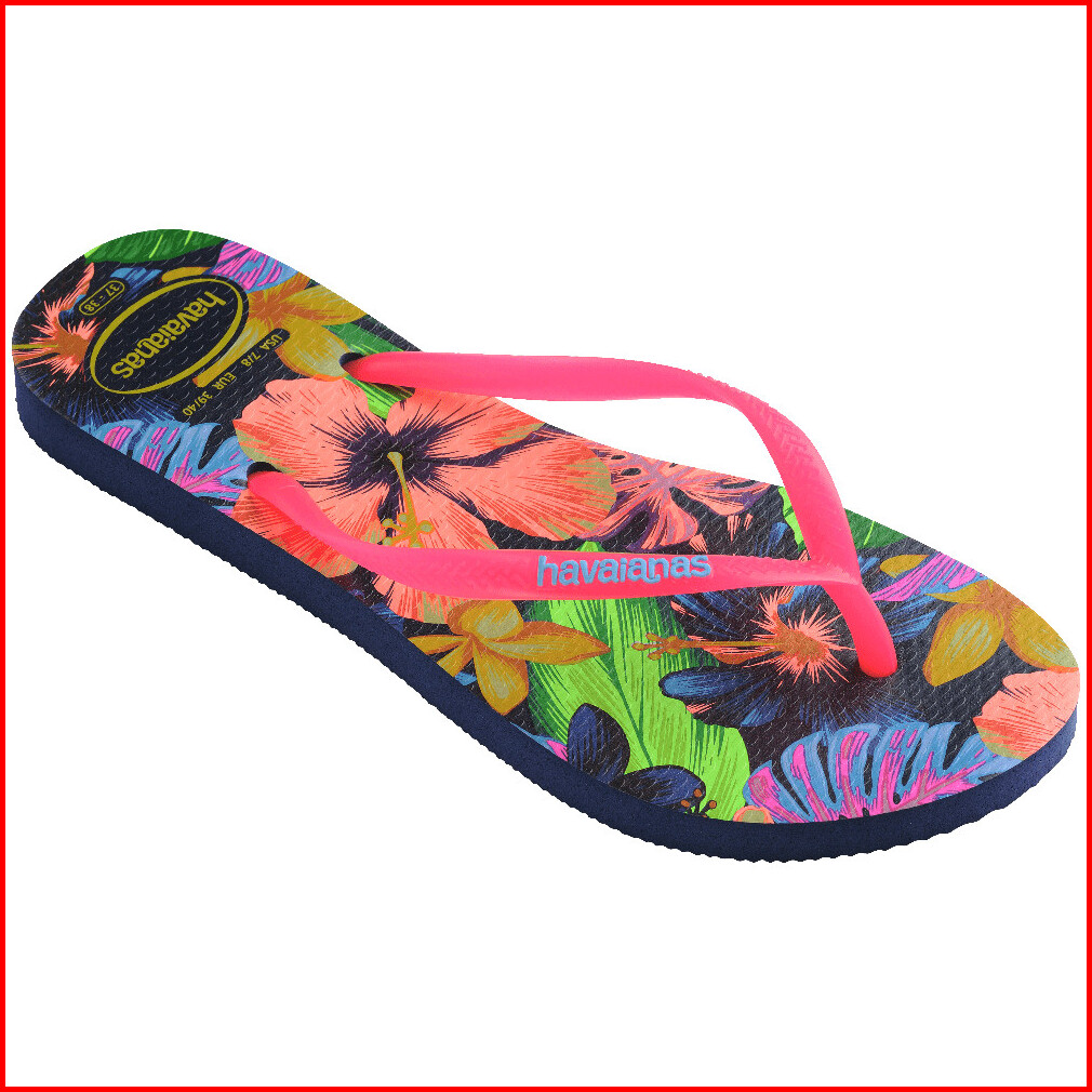 Havaianas 0555 Slim Floral Neon - Navy Blue - Sandal Wanita