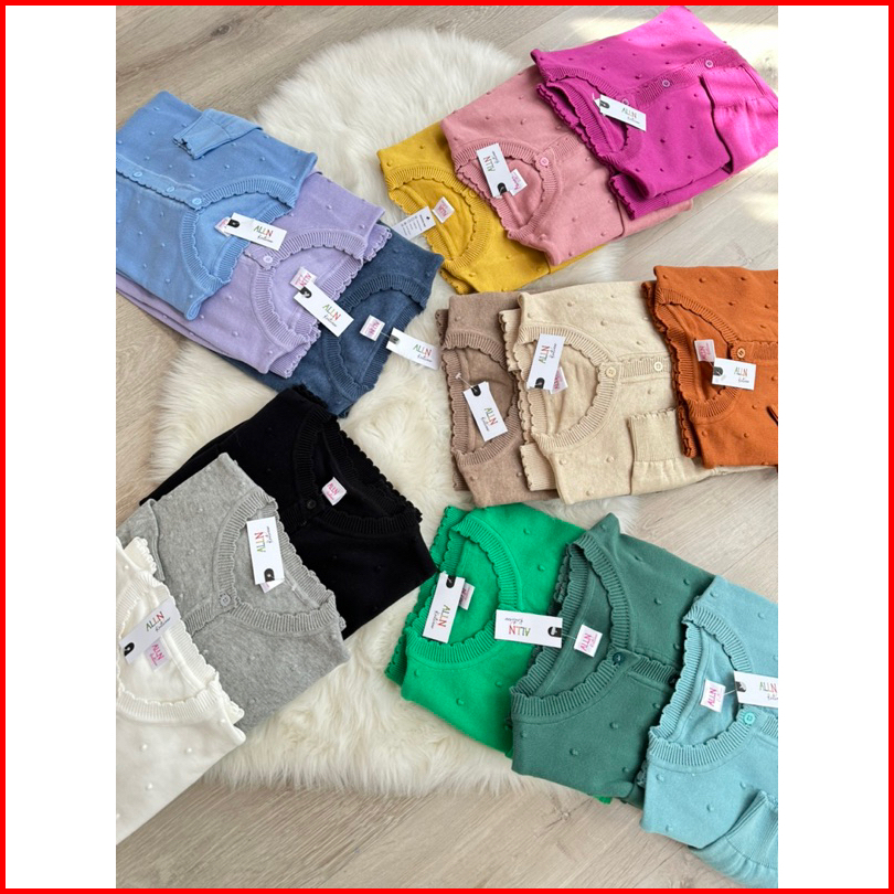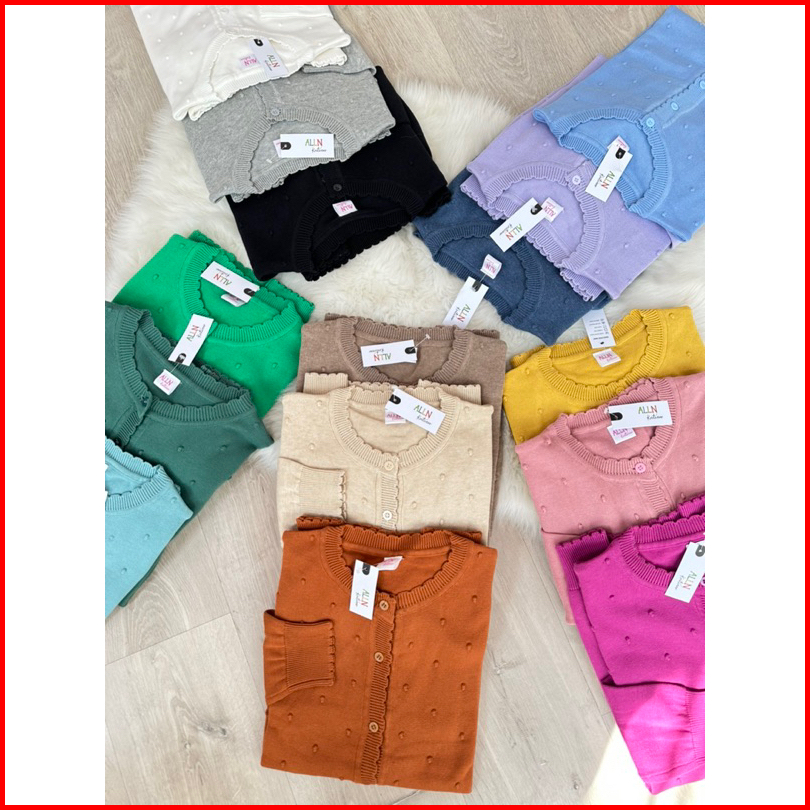 Alln Knitwear Cardigan Rajut Motif Totol Polos Premium