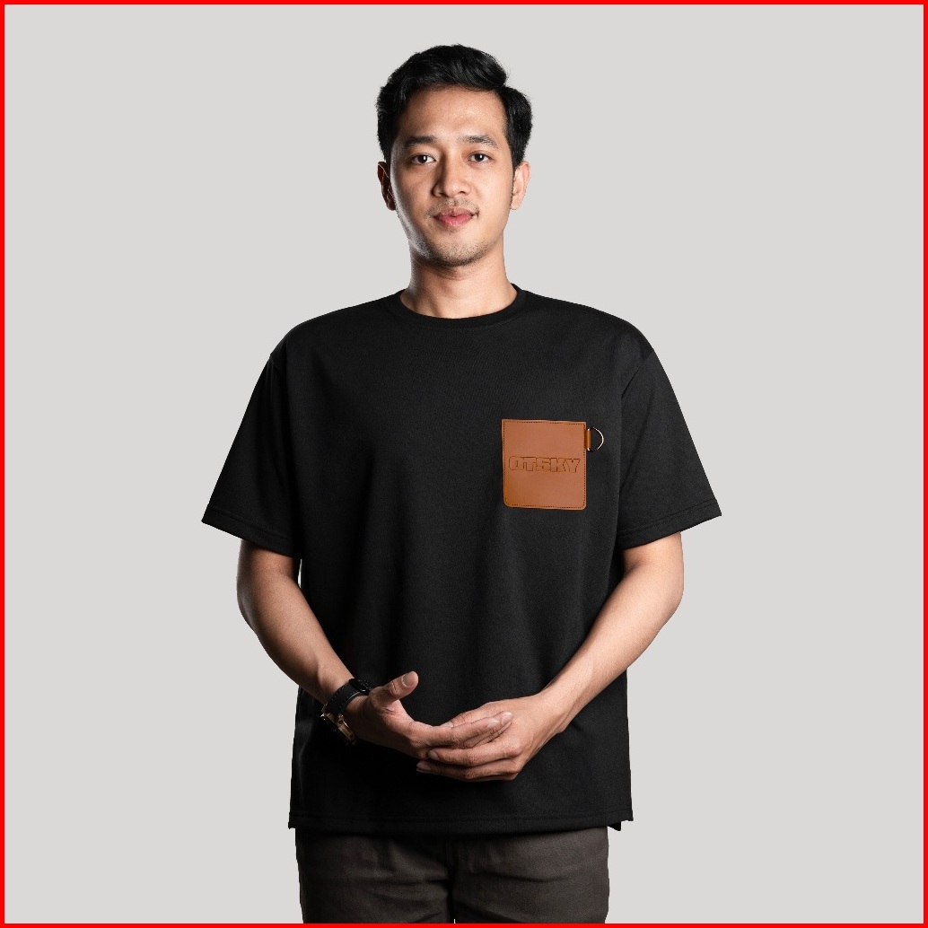 Otsky Kaos Pria Boxy Leather Patch Black X Gb01l Baby Terry U9