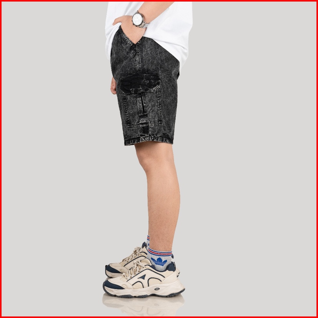 Celana Cargo Short Otsky X Cavier Denim Snow Black All Size U1