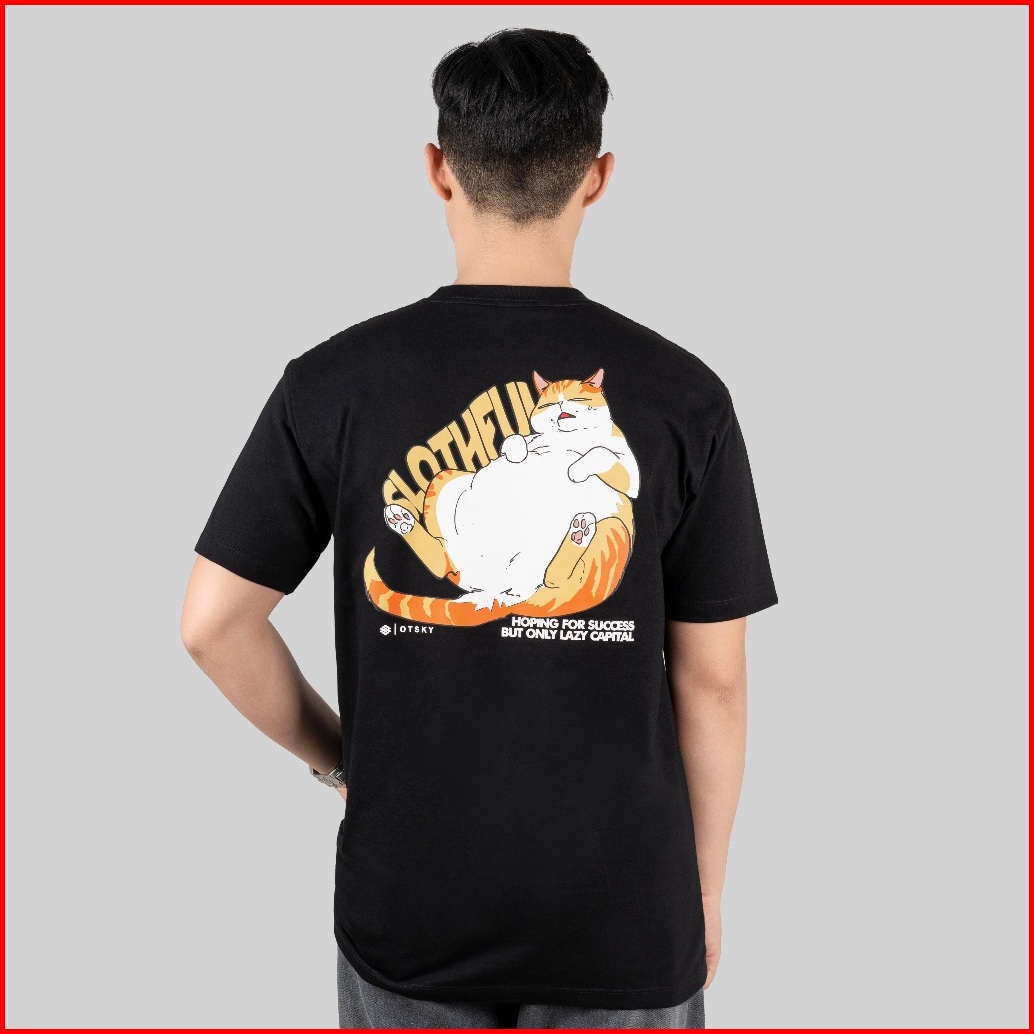 Otsky Kaos Pria Logo Slothful Black X T2001 Cotton 24s V1