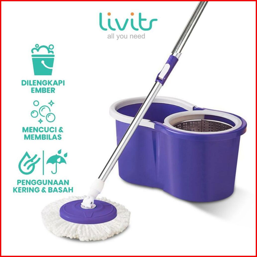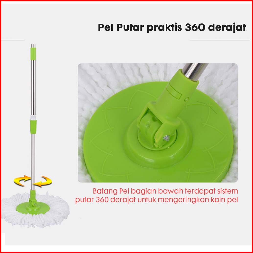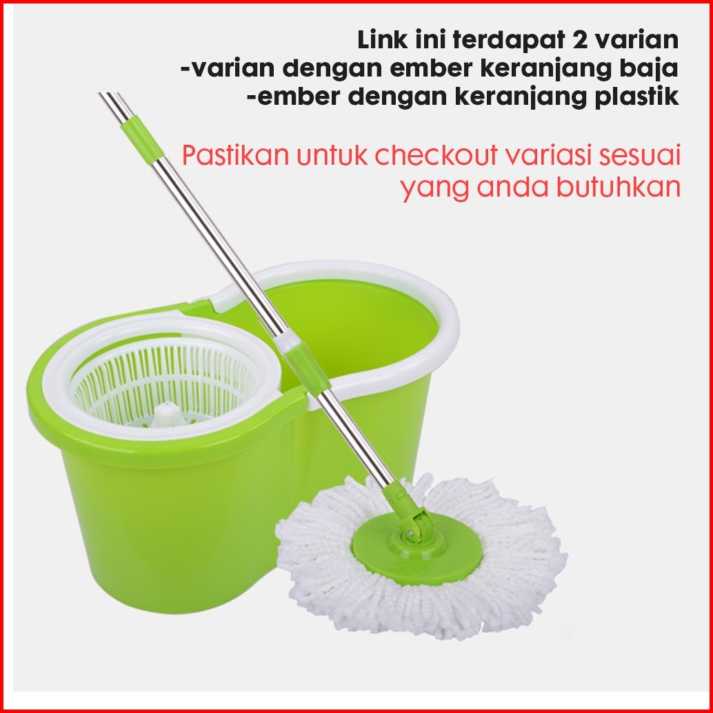 Set Alat Pel Lantai Stainless Super Mop Dengan Ember Pencuci Putar Hand Preassure Rotary Mop 360