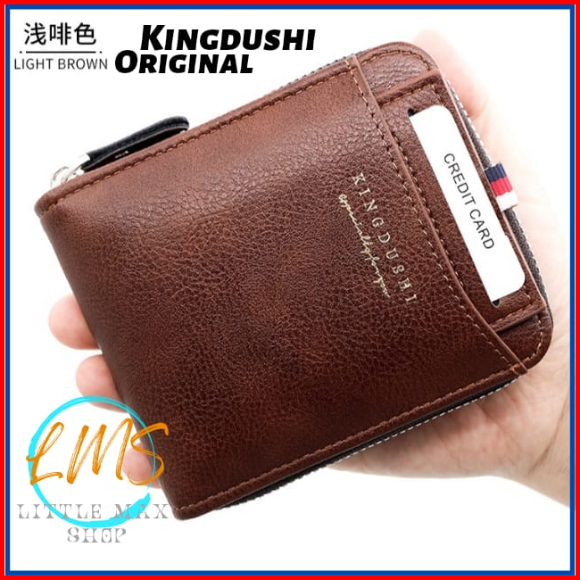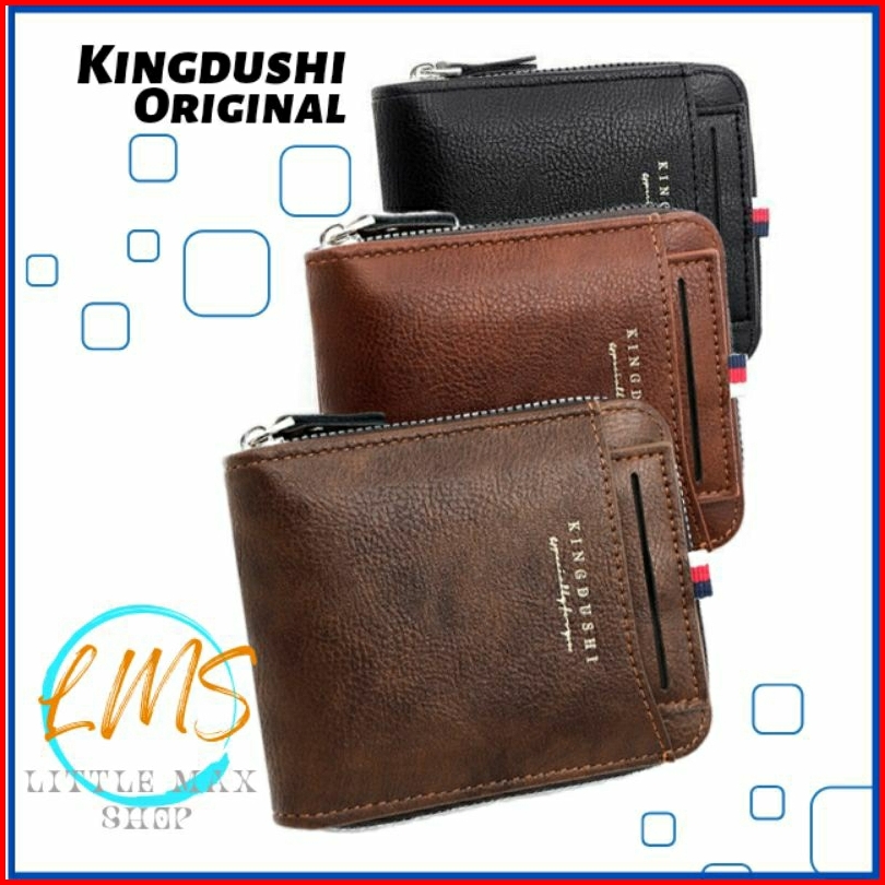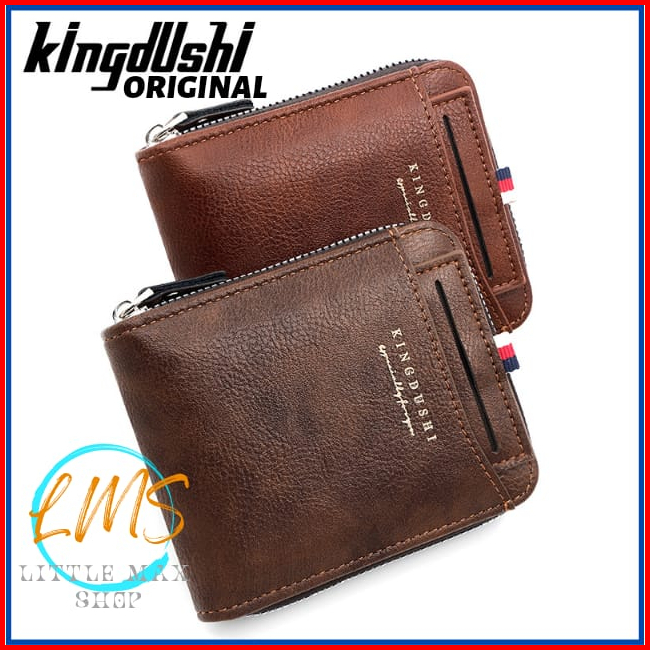 Lms Dompet Import Pria Resleting Koin Original Kingdushi Kulit Pu Premium