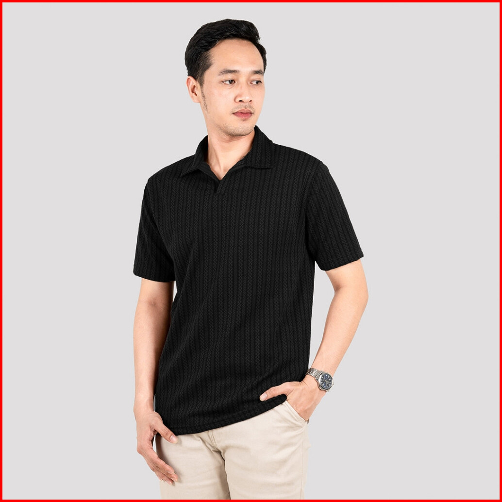 Otsky Polo Shirt Pria Knit Nigar Black Premium
