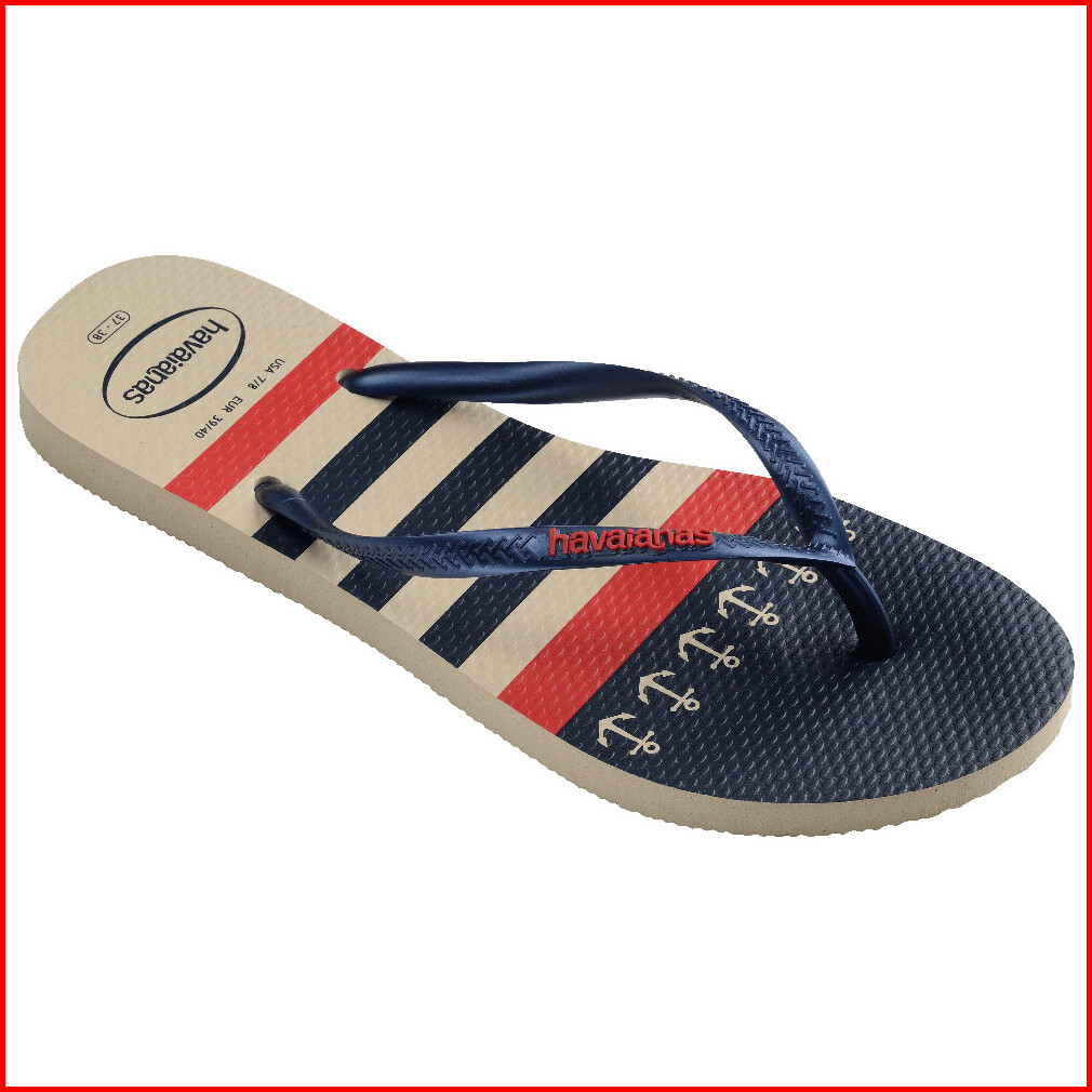 Online Exclusive Havaianas 8009 Slim Nautical - Beige Navy Blue - Sandal Wanita