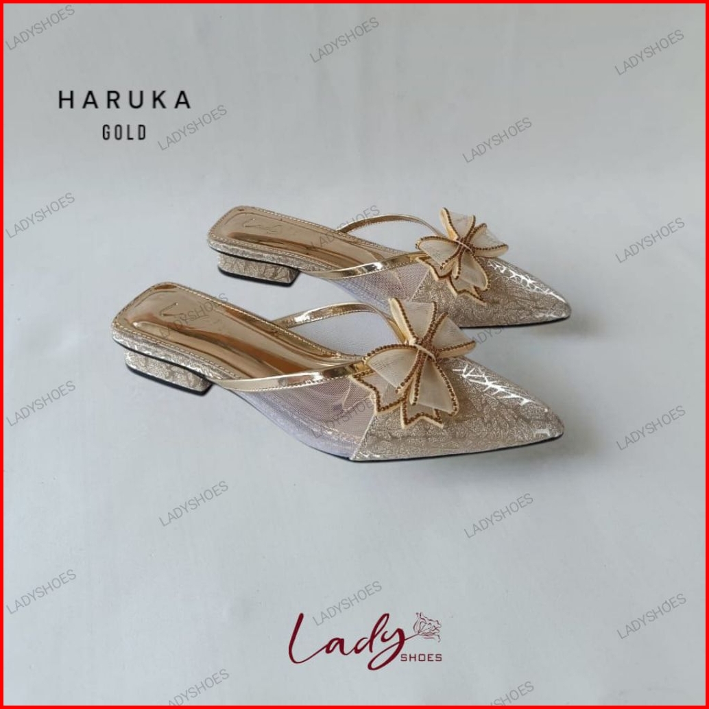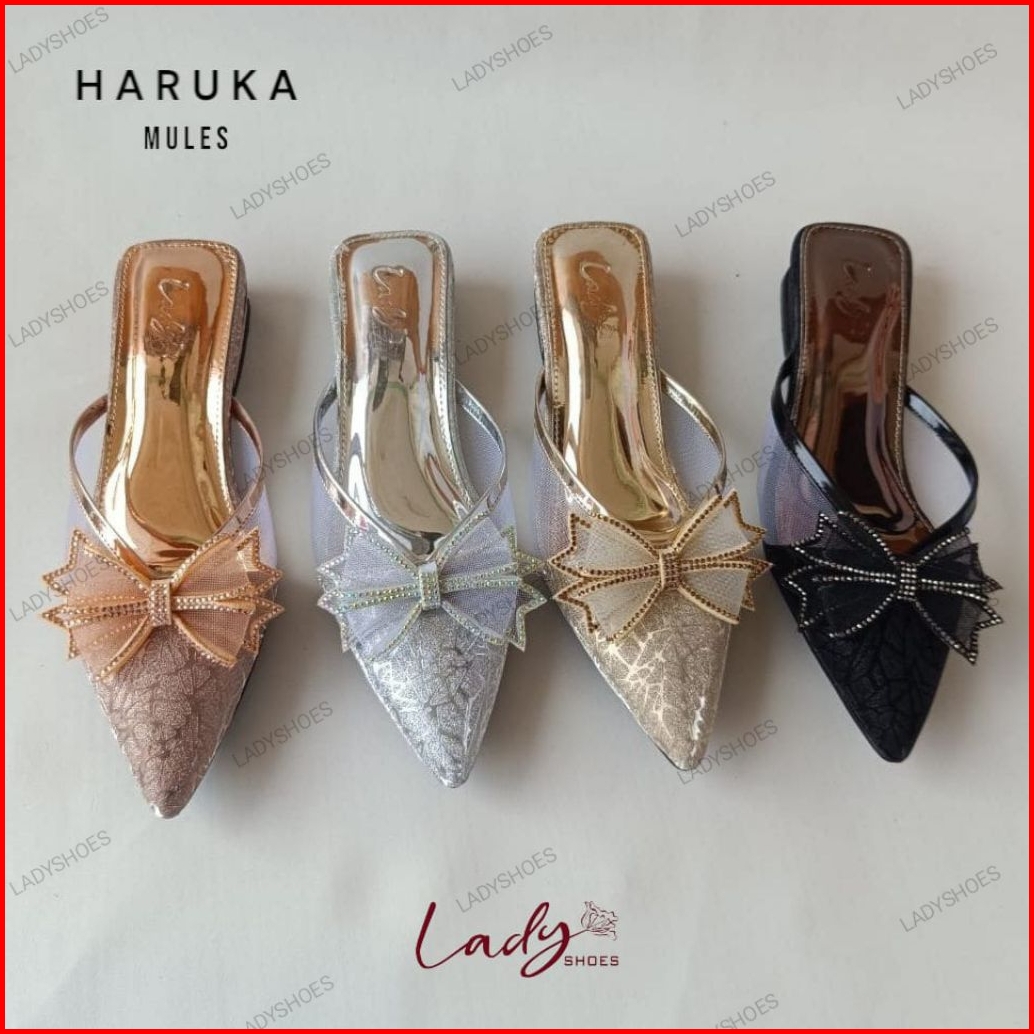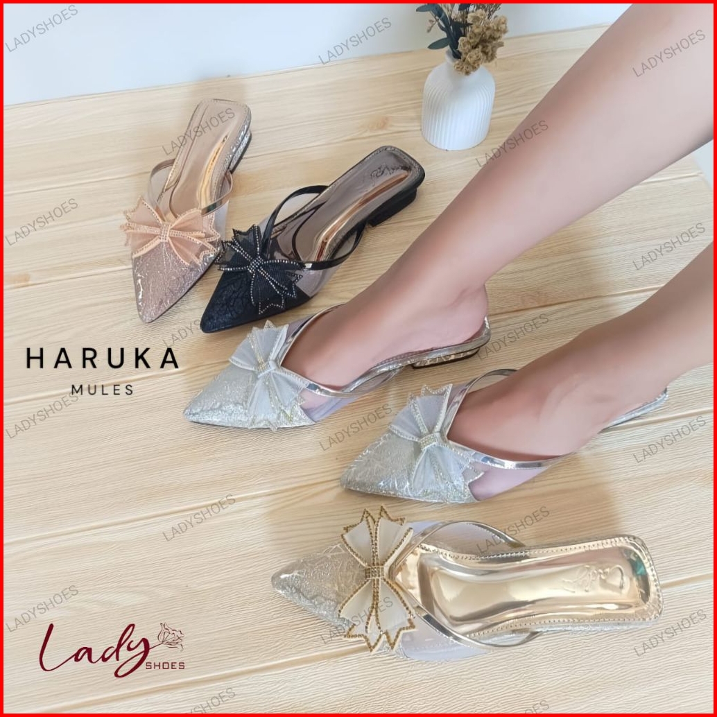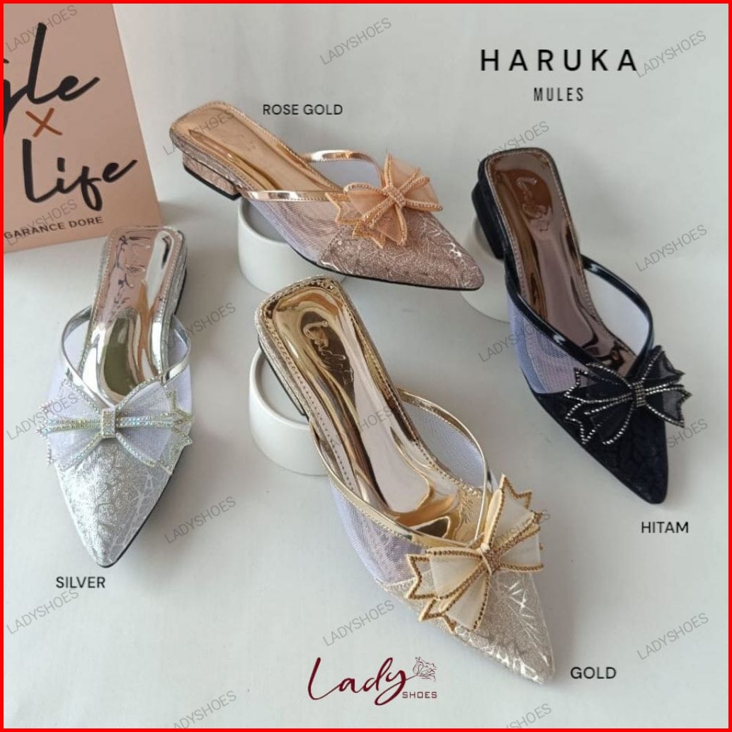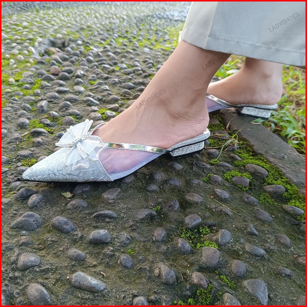 Ladyshoes Haruka Mules Sandal Pesta Wanita Bahan Gliter 2cm