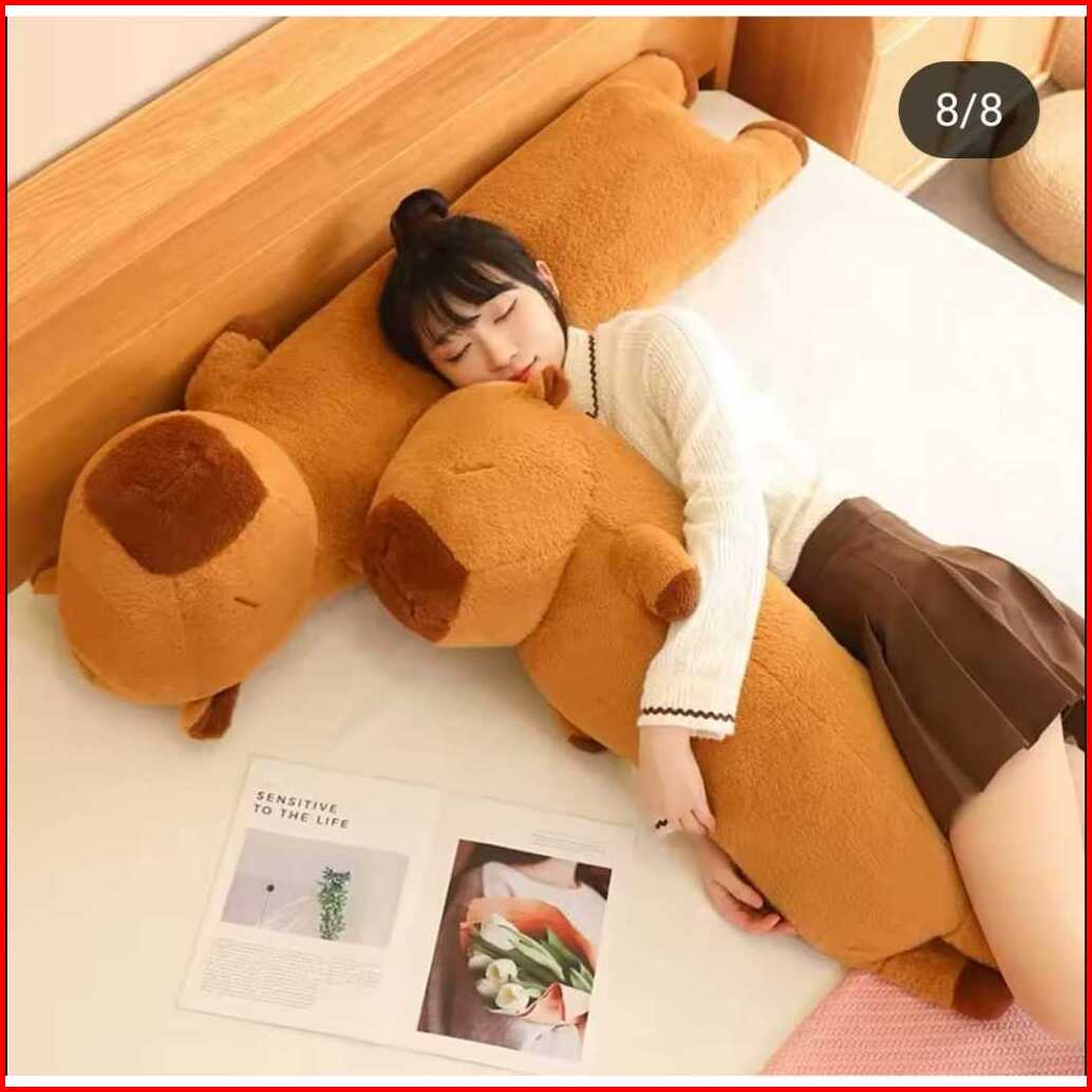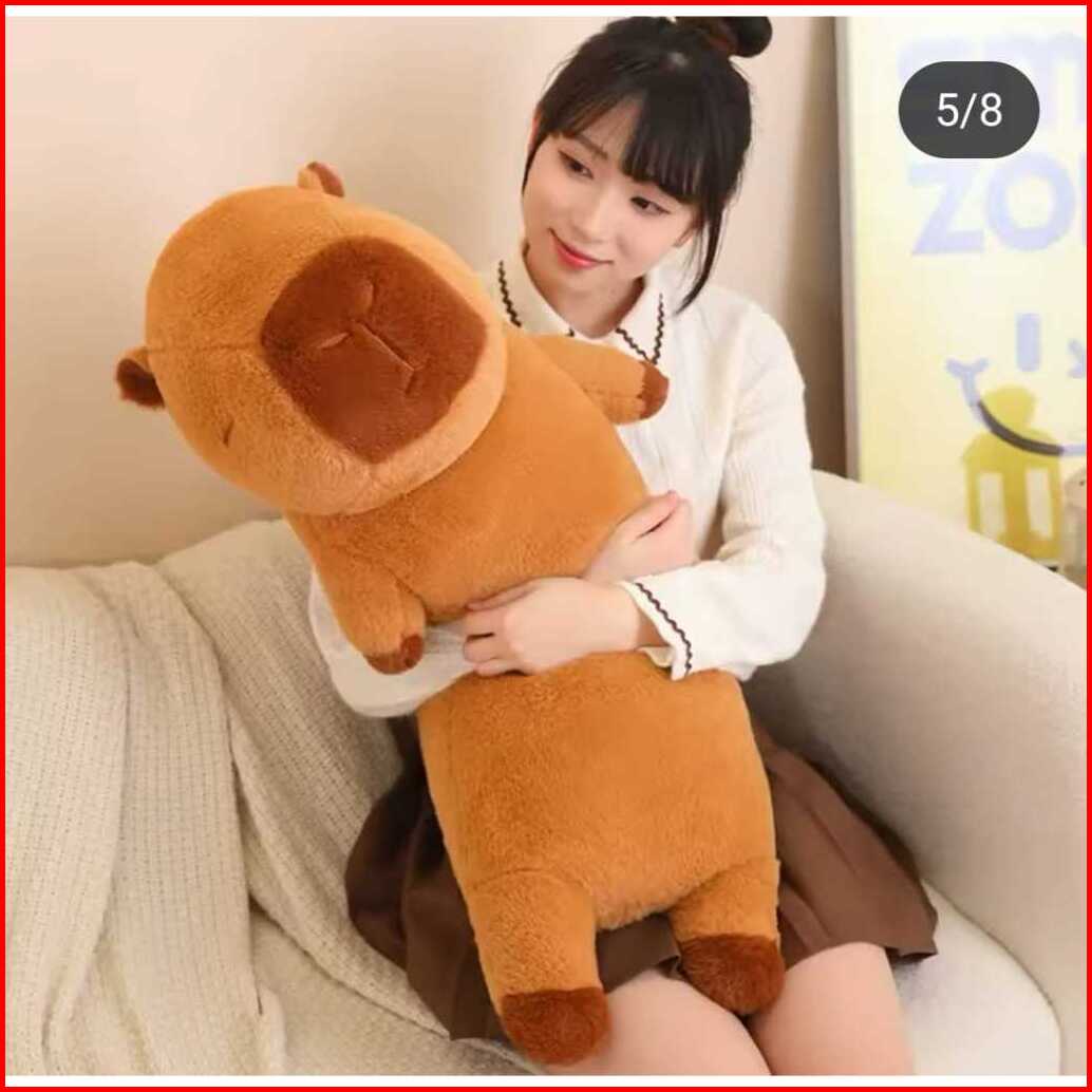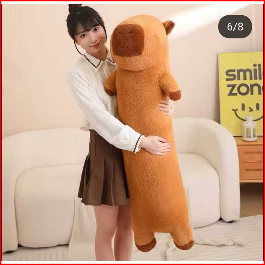 Mainan Boneka Guling Cappybara Bahan Halus Ukuran 60 Cm Dan 80 Cm Ber Lebel Sni