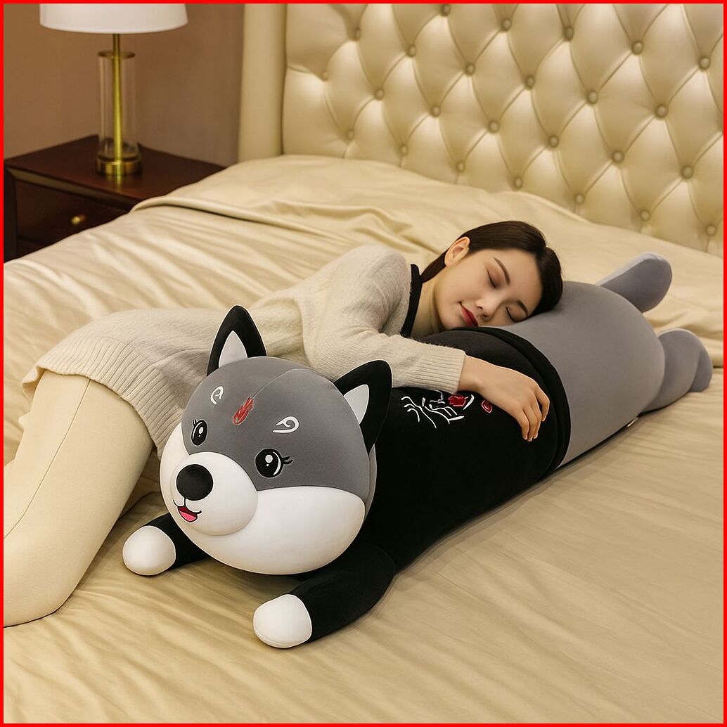 Bantal Guling Boneka Karakter Dog Anjing Husky Lying Ukuran 100cm Plush Bahan Halus Lembut
