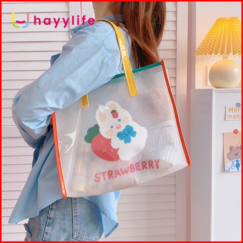 Hayylife Tas Anti Air Transparan Kapasitas Besar Kartun Jelly Bahan Pvc Hl-faa780