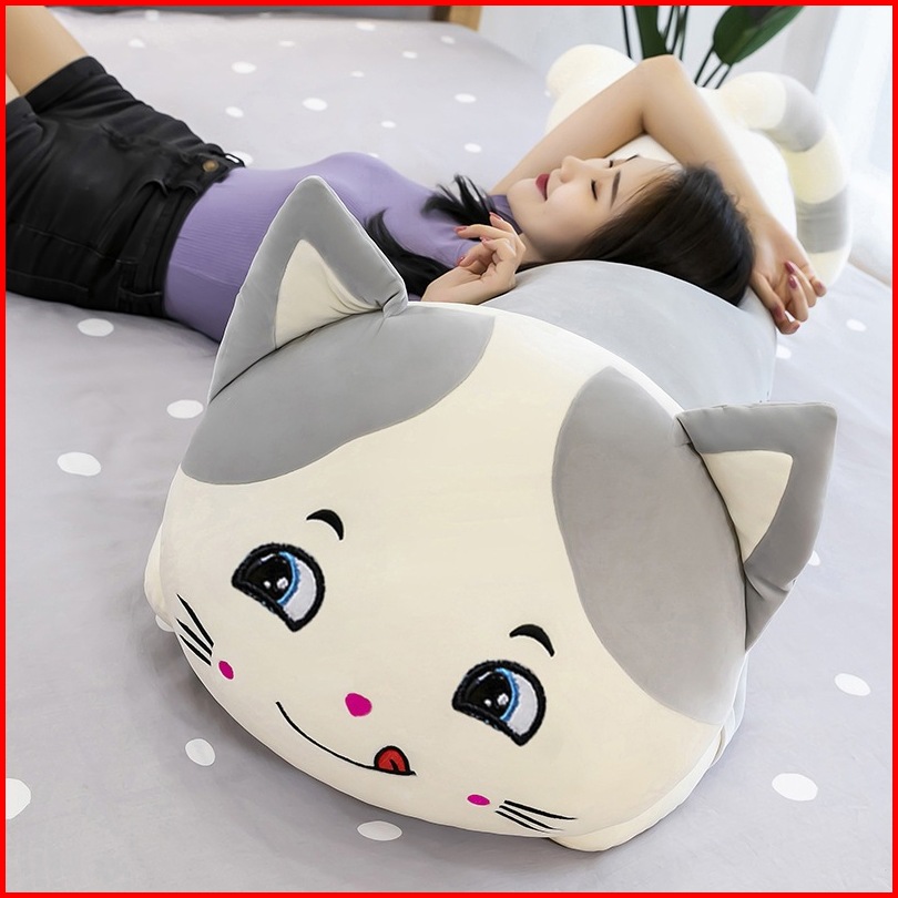 Bantal Guling Kucing Lying Jumbo 95cm Bahan Plush Premium Hadiah Anak Ulang Tahun Dolls Toys