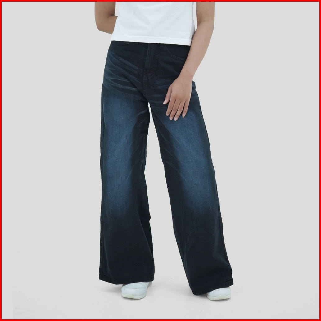 Fairgoods Jeans Wanita Wide Baggy Odila Dark Black