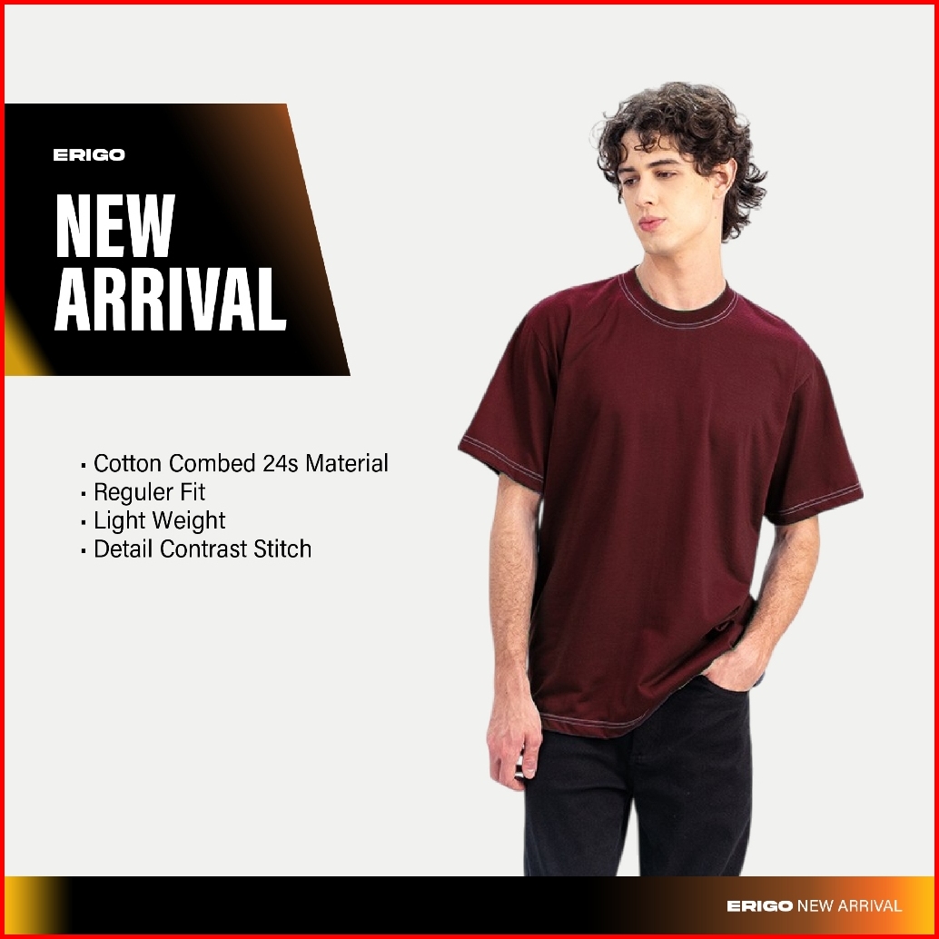 Erigo T-shirt Contrast Stitch Veerman Maroon - Kaos Unisex