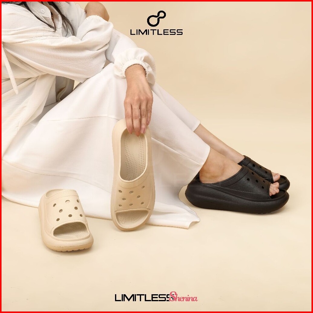 Limitless Sendal Slip On Wanita Dewasa Shenina Wedges Kekinian Sandal Slide Cewek Santai Hak Tinggi Kasual Terbaru 2025