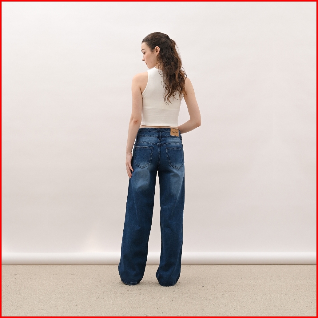 Fairgoods Jeans Wanita Hight Waist Straight Loose Forema Faded Navy