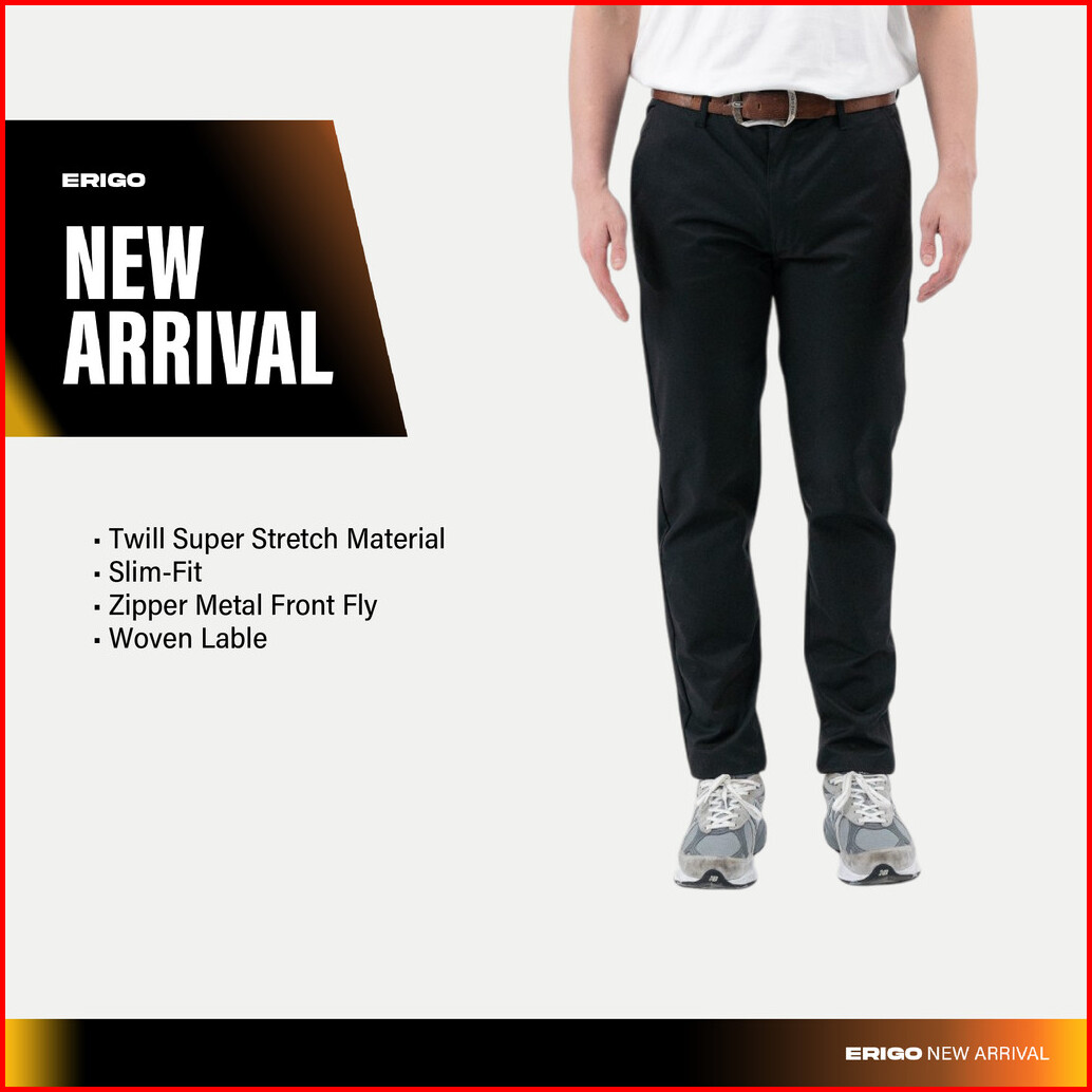 Erigo Chino Pants Flexi Fit Vasco Black - Celana Panjang Chino Unisex