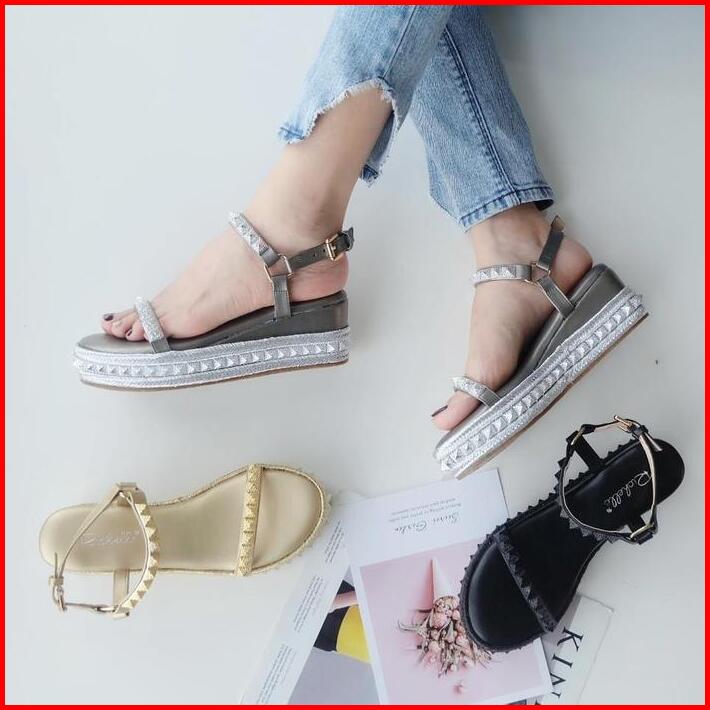 Leica Sandal Wanita Wedges Tali 5 Cm Kaki Lebar Atau Gemuk Naik Sz