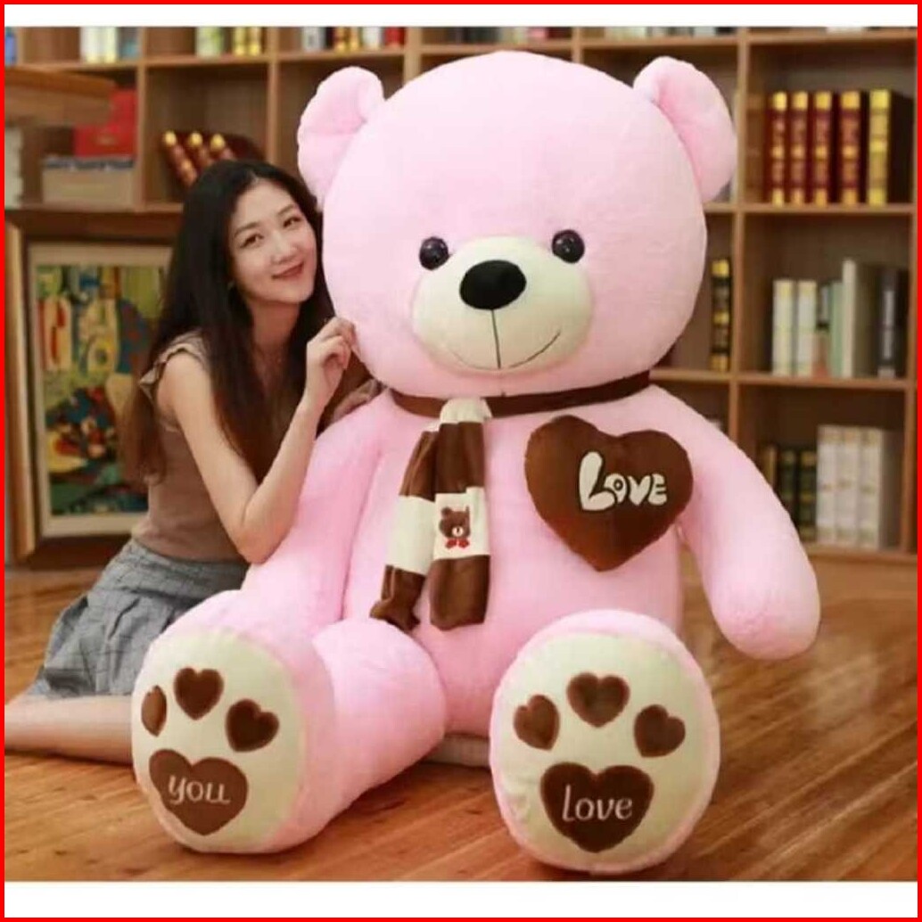 Boneka Teddy Bear Fluffy Syal Super Jumbo Telapak 1.2 Meter Sni