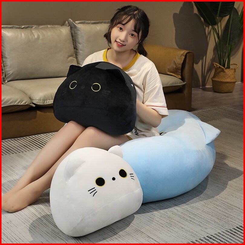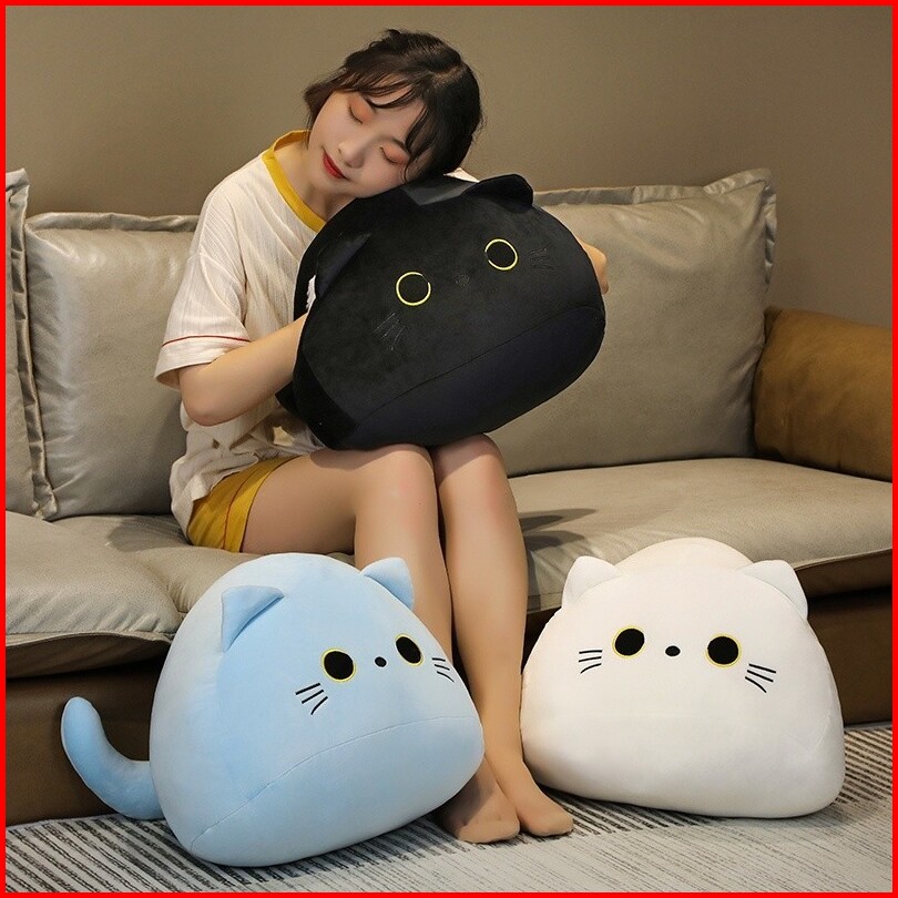 Boneka Lembut Kucing Hitam Mewah Boneka Hewan Kucing Bantal Fat Black Cat Kitten Plushie Kucing Lucu Bantal Bantal Untuk