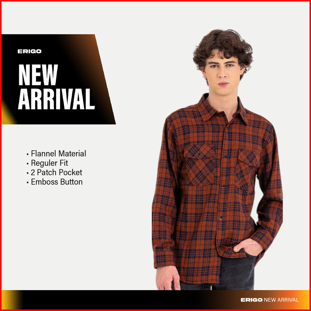 Erigo Flannel Shirt Norval Red - Kemeja Lengan Panjang Flannel Unisex