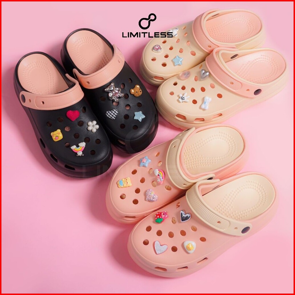 Limitless Free Stiker Clay Sandal Wanita Platform Sunny Terbaru Eva Premium Sendal Cewek Tinggi Wedges Empuk Ringan Casu