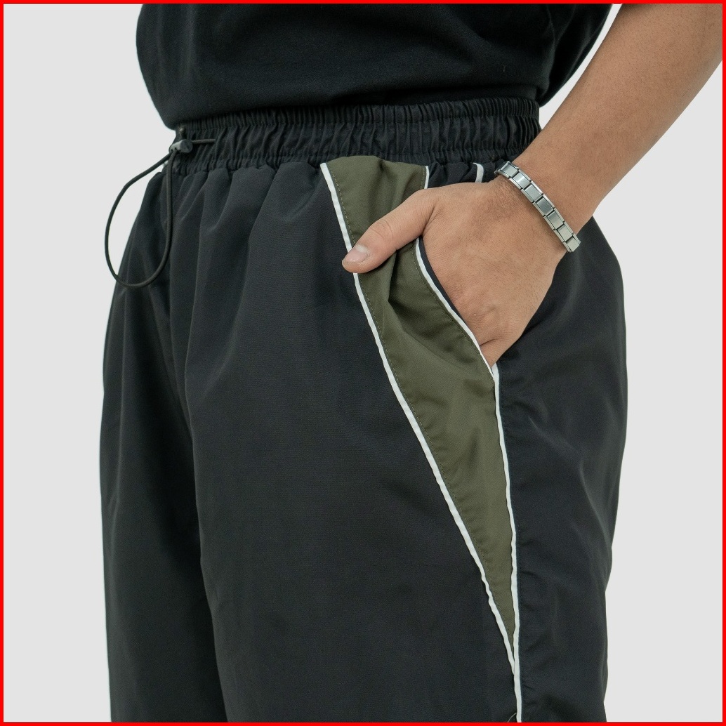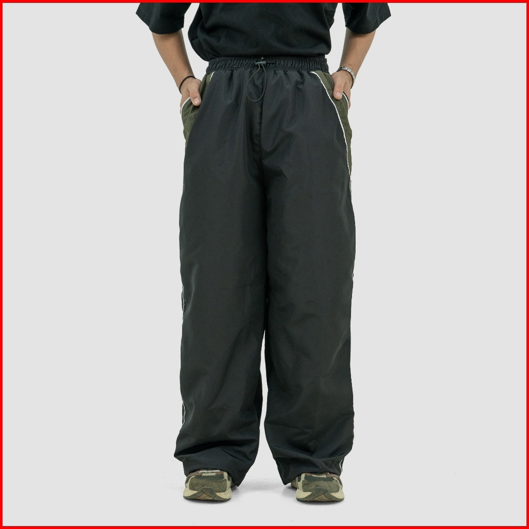 Fairgoods Celana Panjang Loose Fit White Nylon Stripe Merrel Black