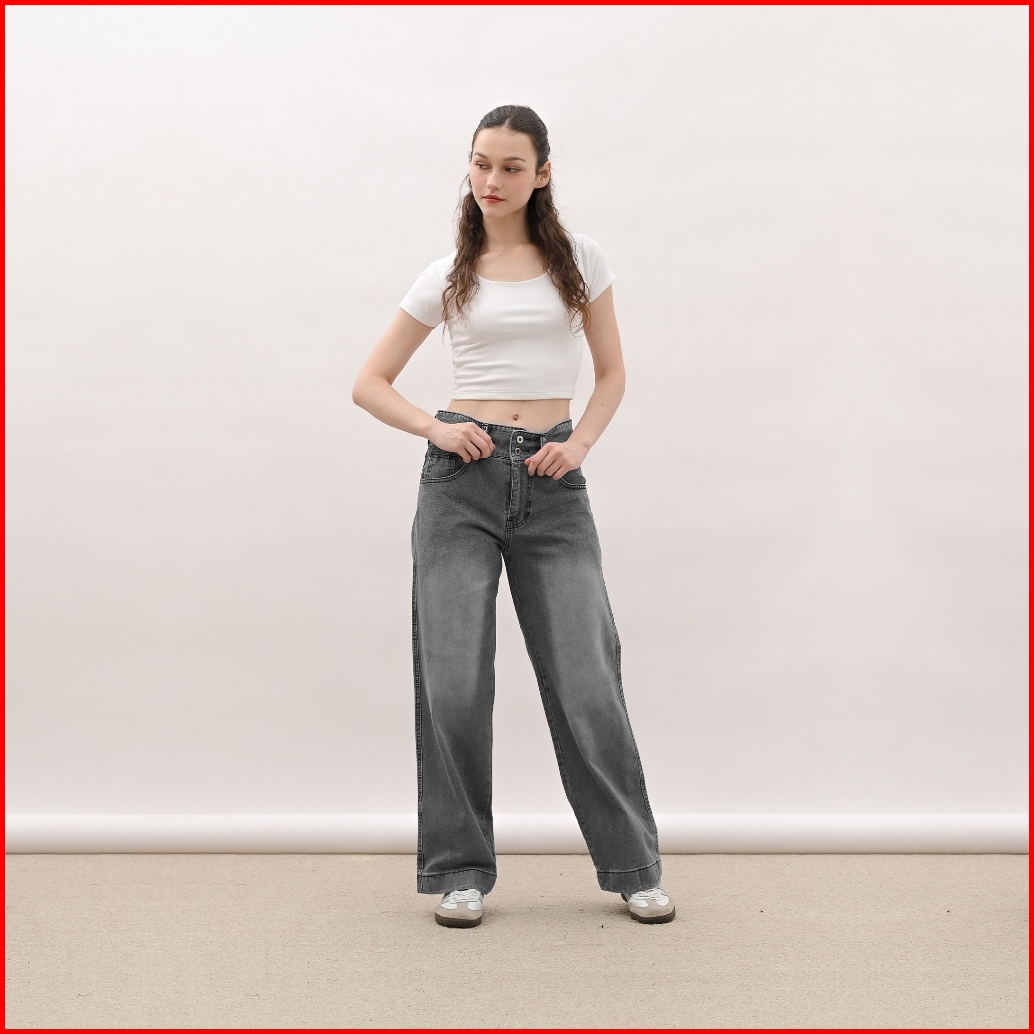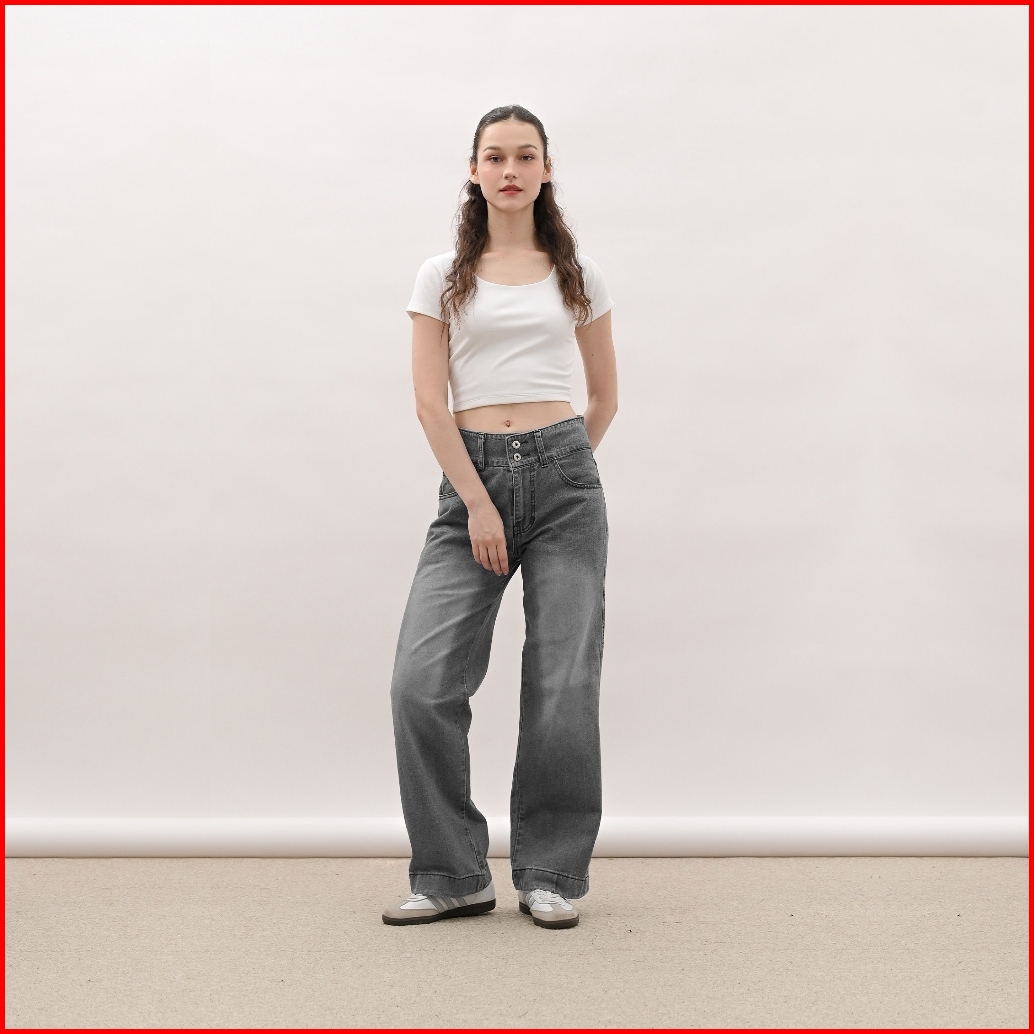 Fairgoods Jeans Wanita Reguler Hight Waist Mika Grey