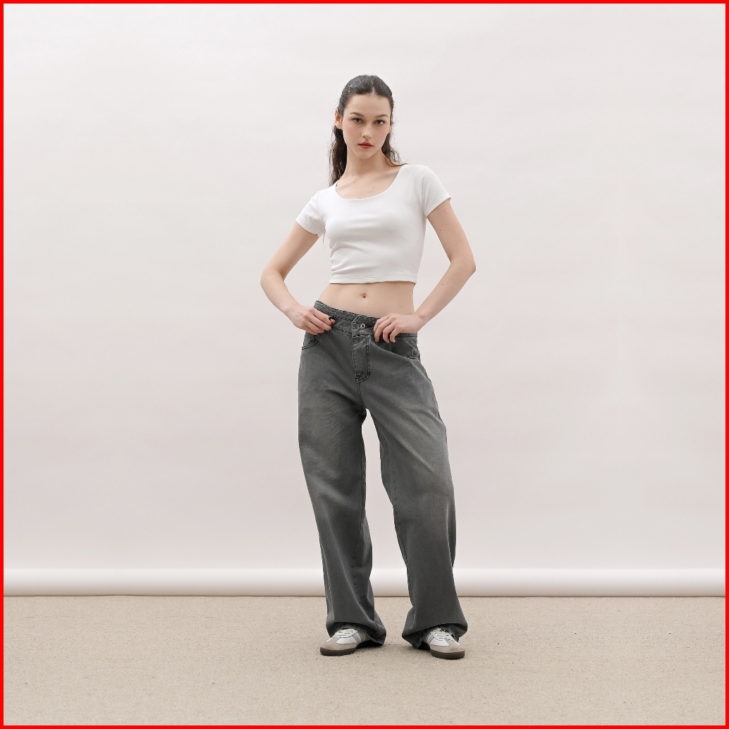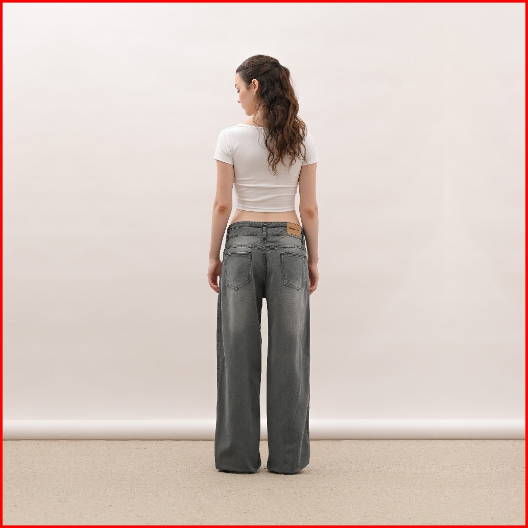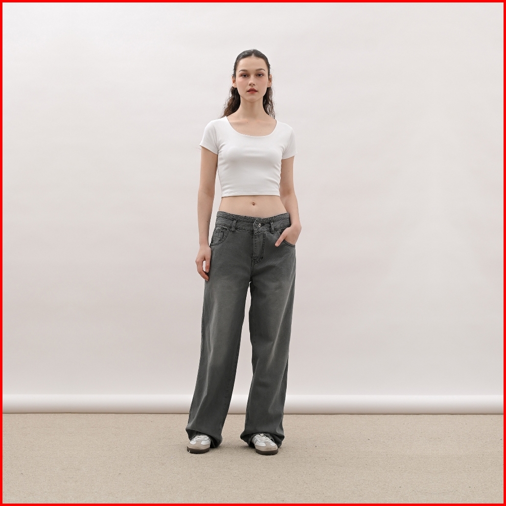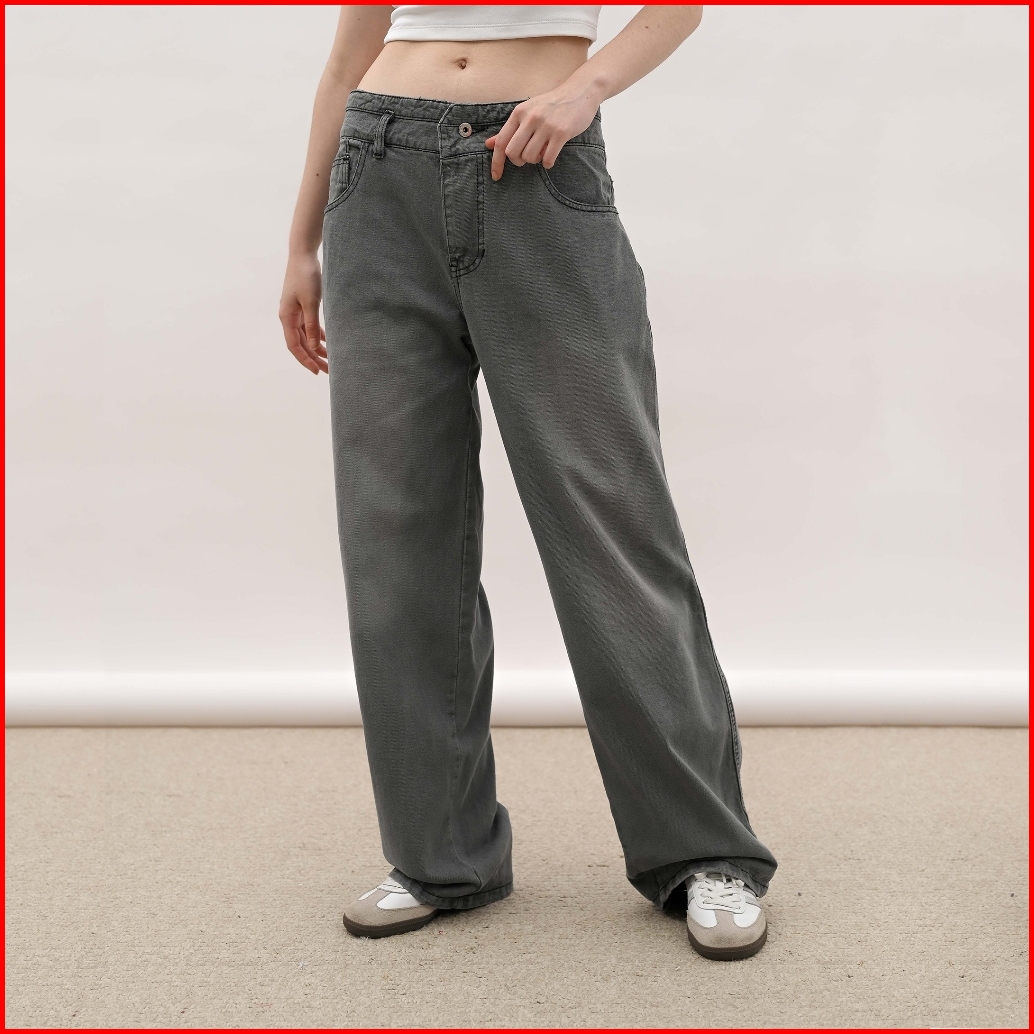 Fairgoods Jeans Wanita Hight Waist Straight Loose Forema Grey