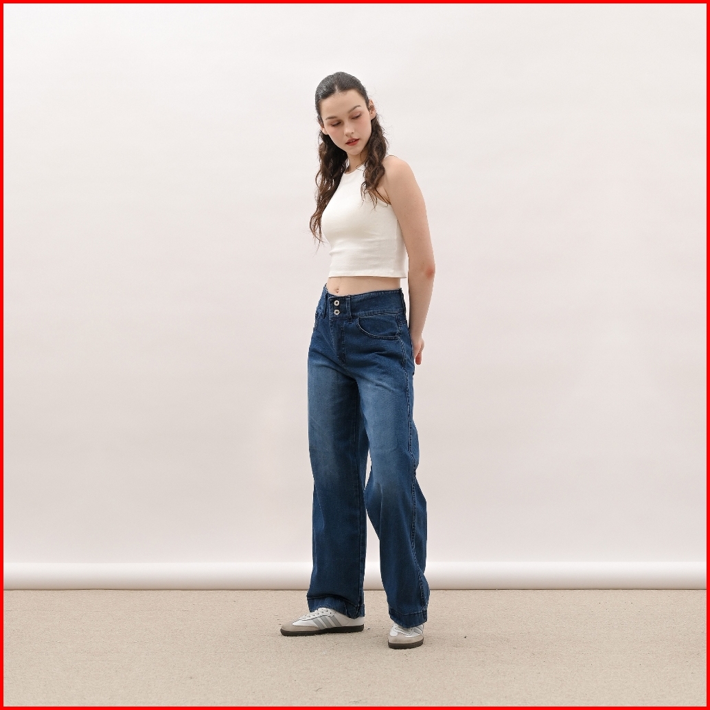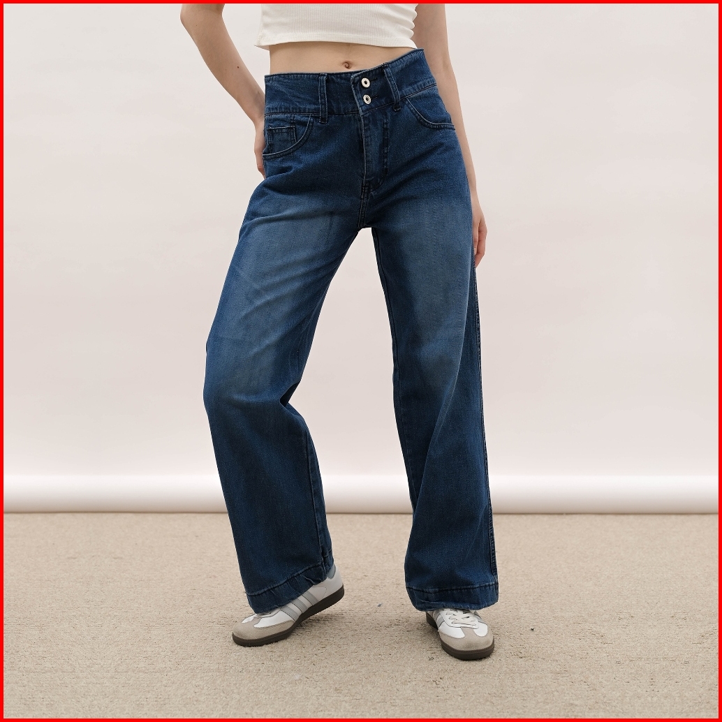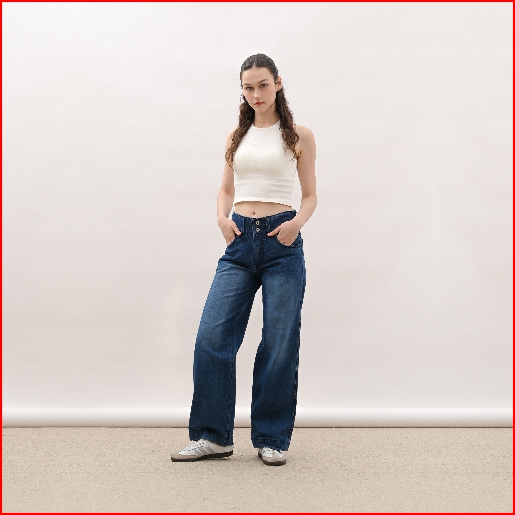 Fairgoods Jeans Wanita Reguler Hight Waist Mika Faded Navy