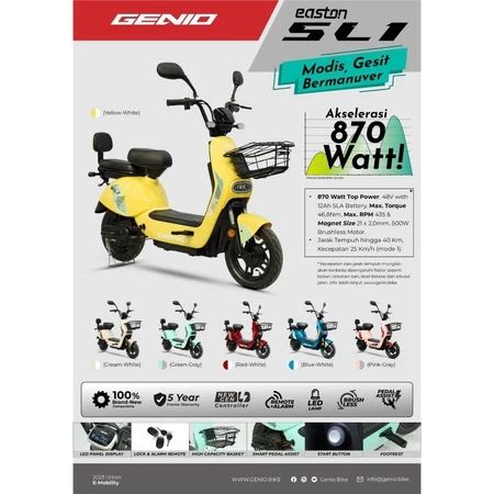 SEPEDA LISTRIK GENIO EASTON S1 SL1 ELECTRIC BIKE SEPEDAH DEWASA ANAK LAKI LAKI PEREMPUAN MURAH TANPA DP TERBARU