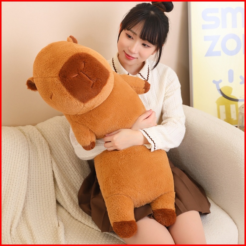 Guling Boneka Capybara Ukuran 80 Cm Dan 60 Cm Bahan Halus Dan Lembut Ber Lebel Sni