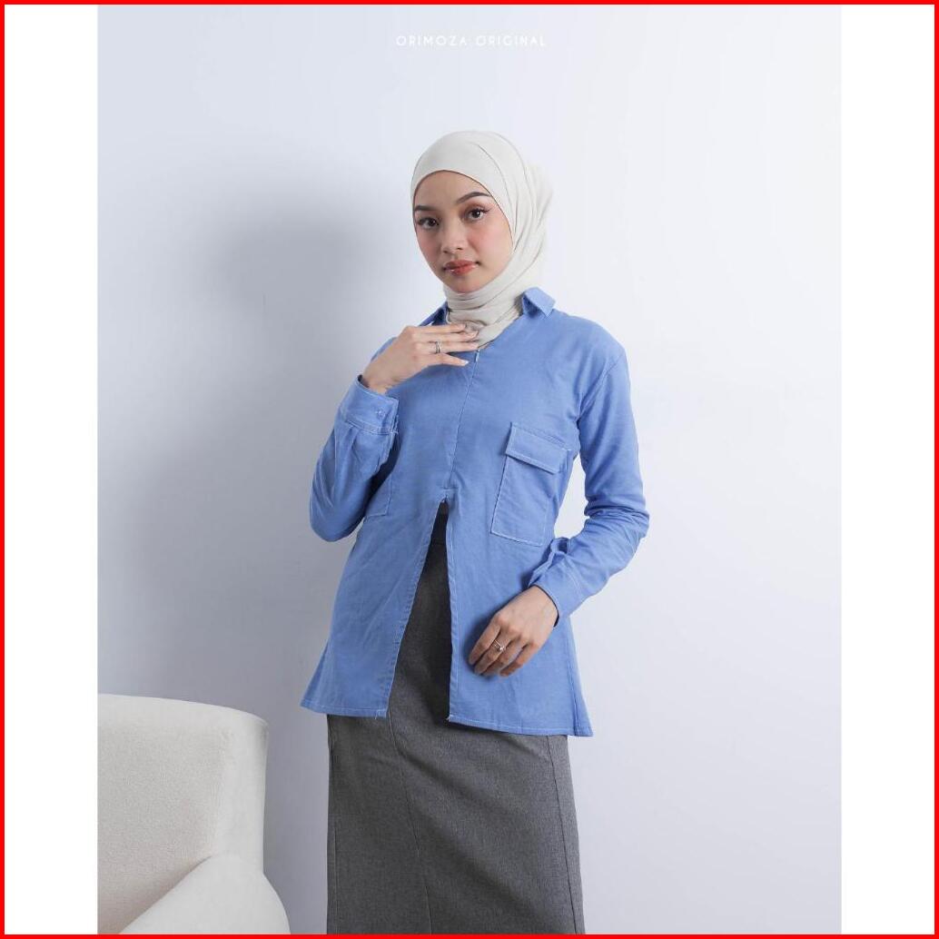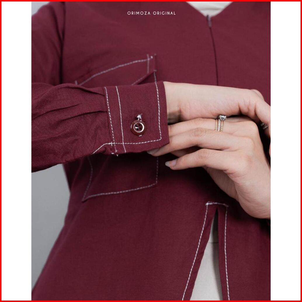 Orimoza Jessy Longsleeves Pocket Slit Atasan Kemeja Wanita Linen Rami