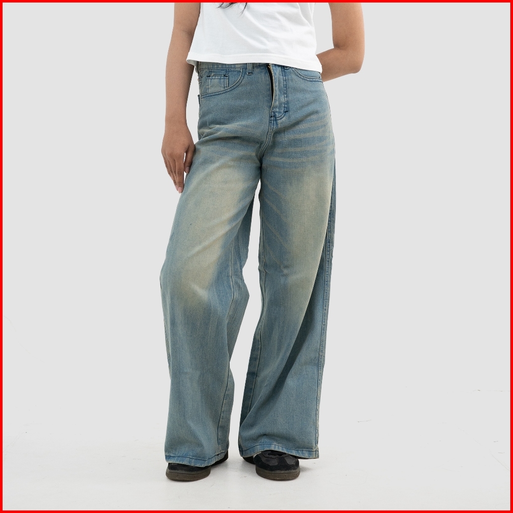 Fairgoods Jeans Wanita Wide Baggy Odila Stone Hijau