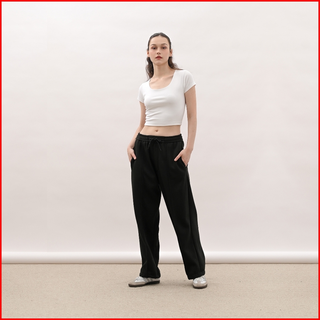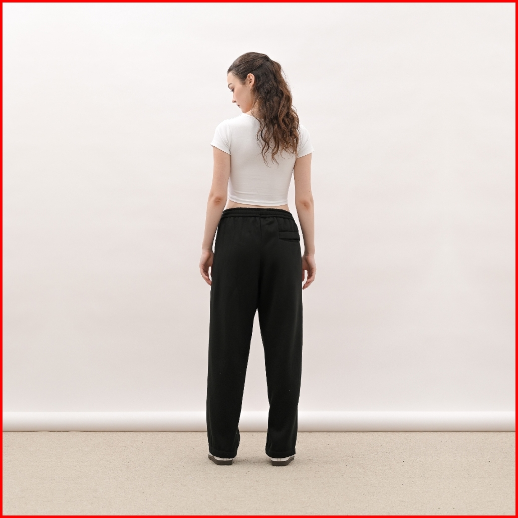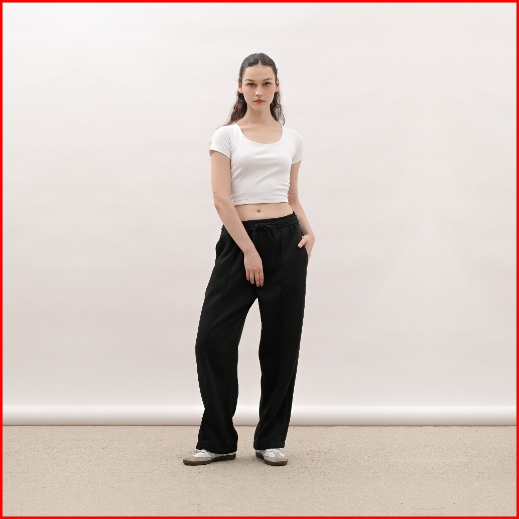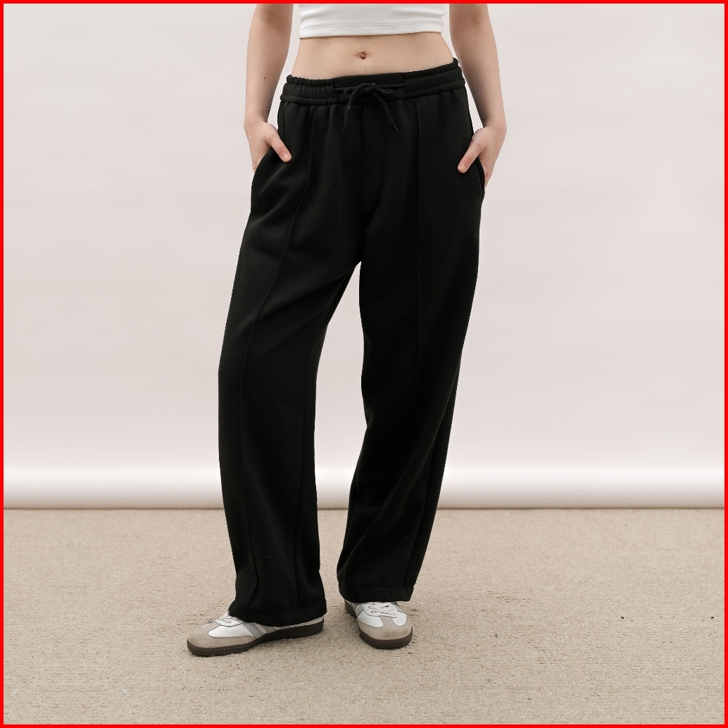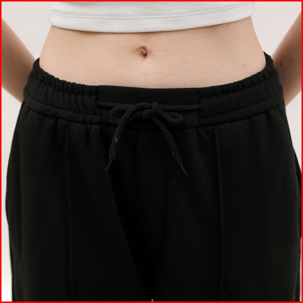 Fairgoods Sweat Pants Wanita Baggy Wide Fleece Hygeen Black